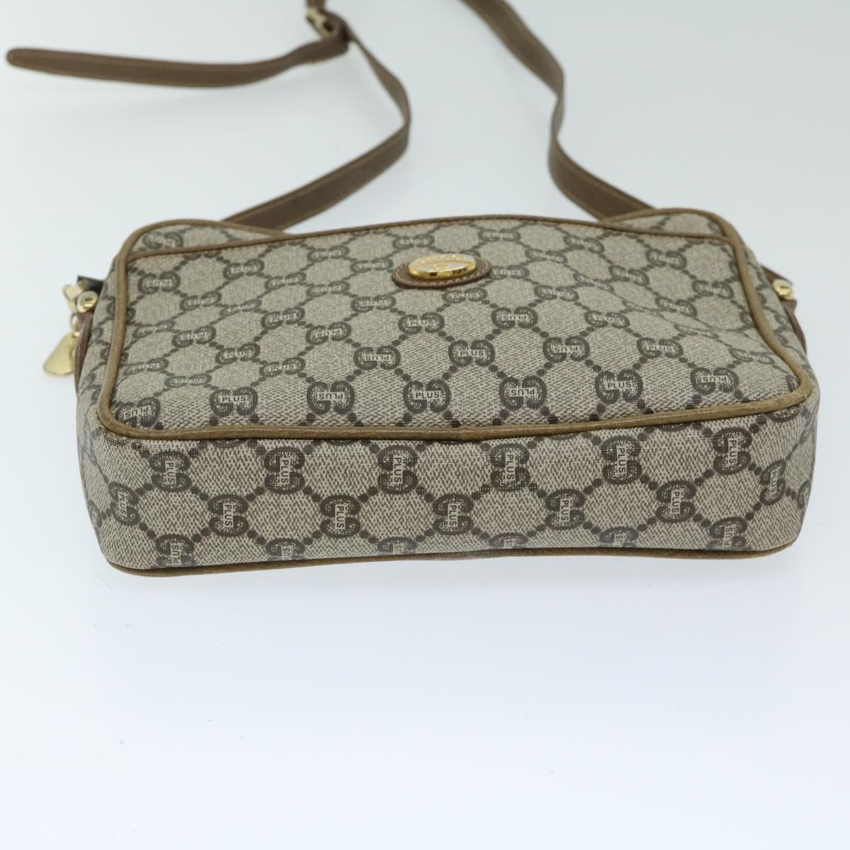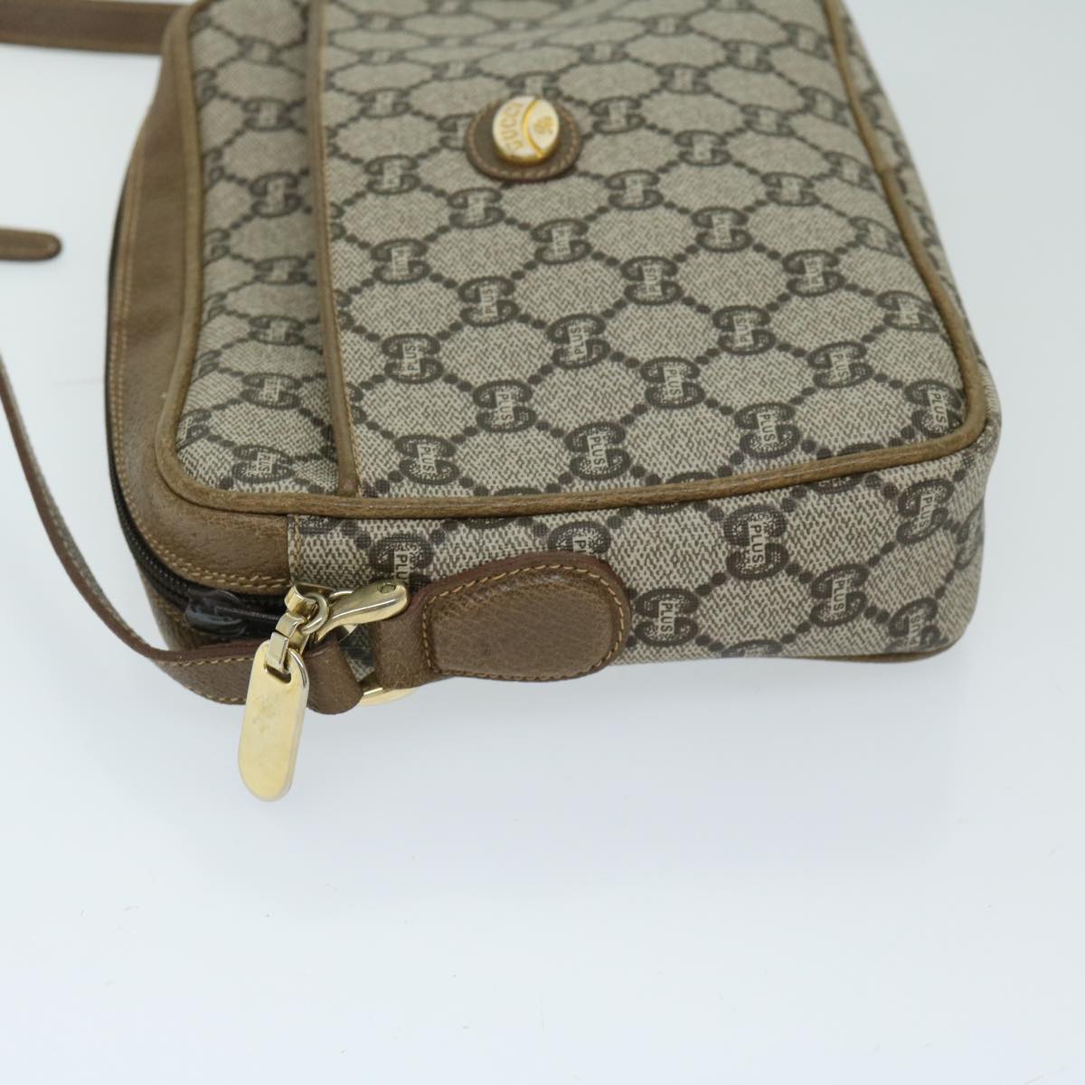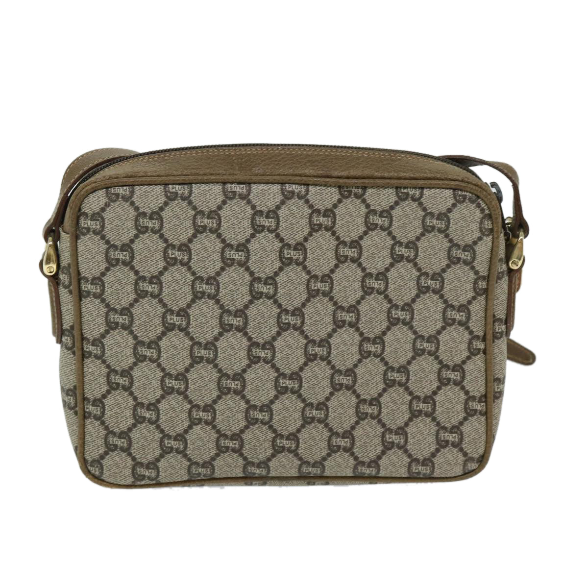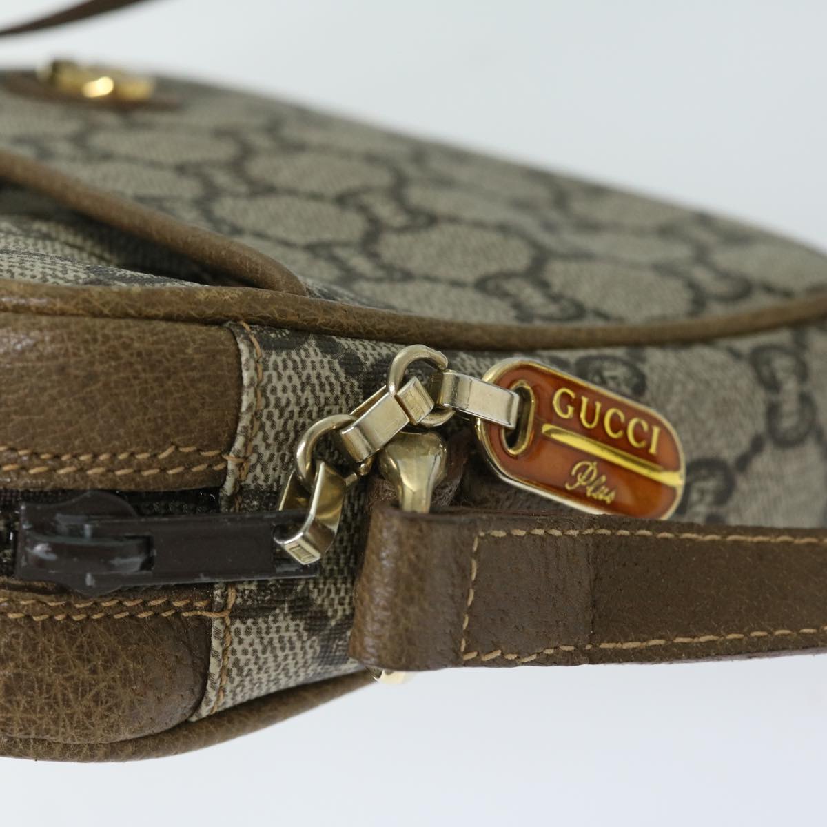 GUCCI GG PLUS Canvas Shoulder Bag PVC Beige Auth 68160