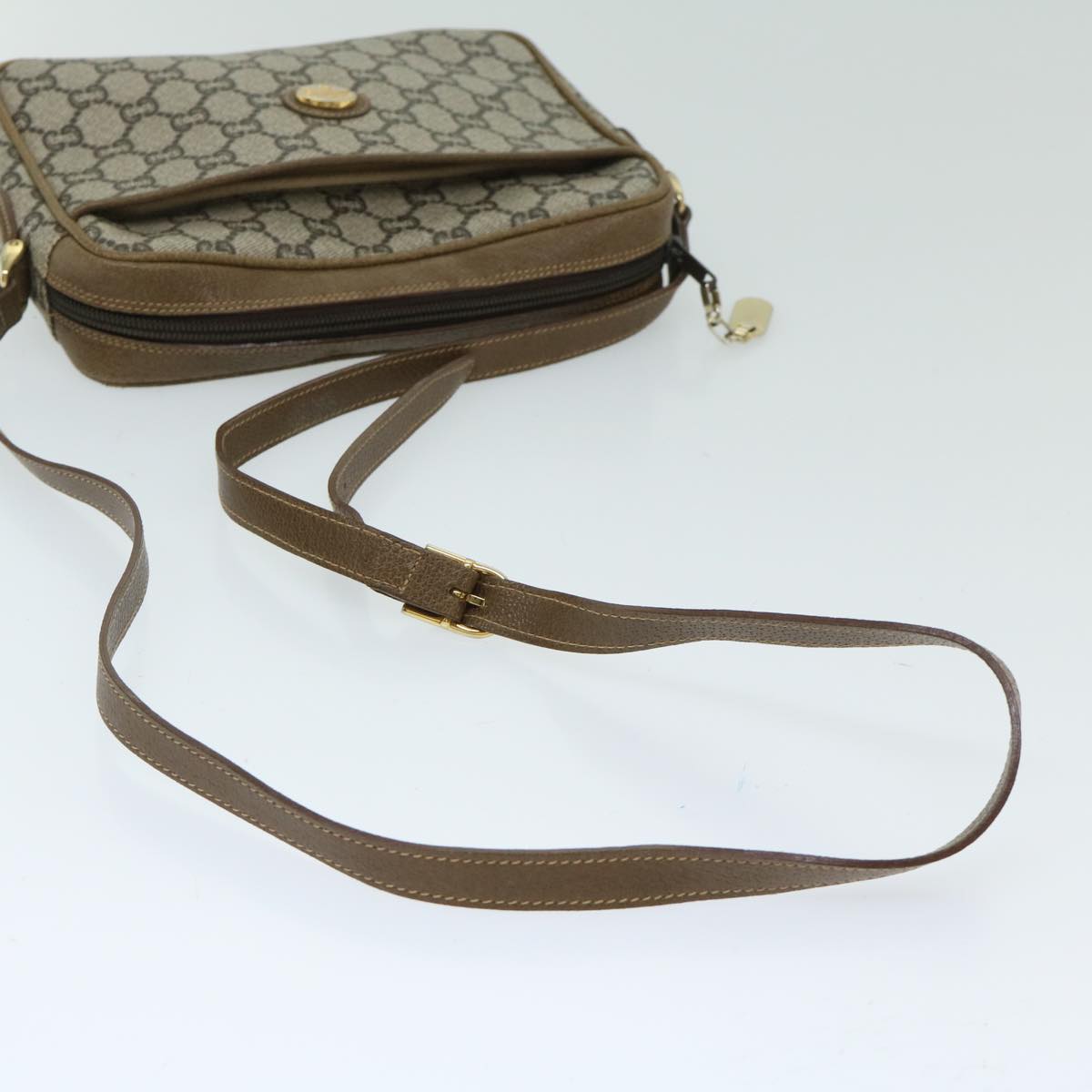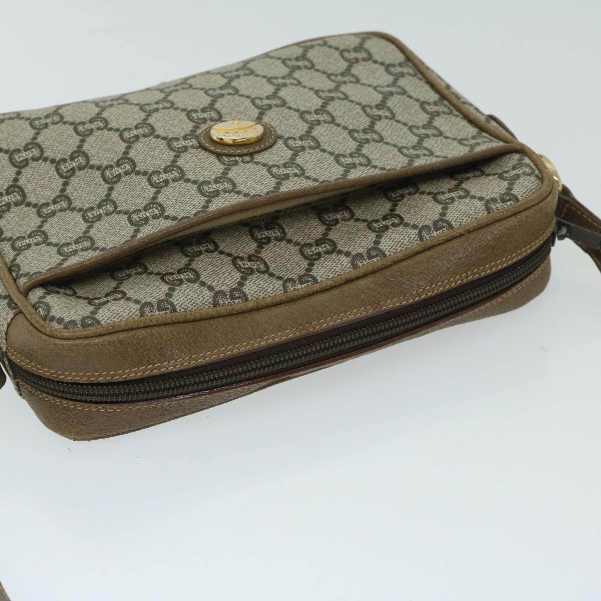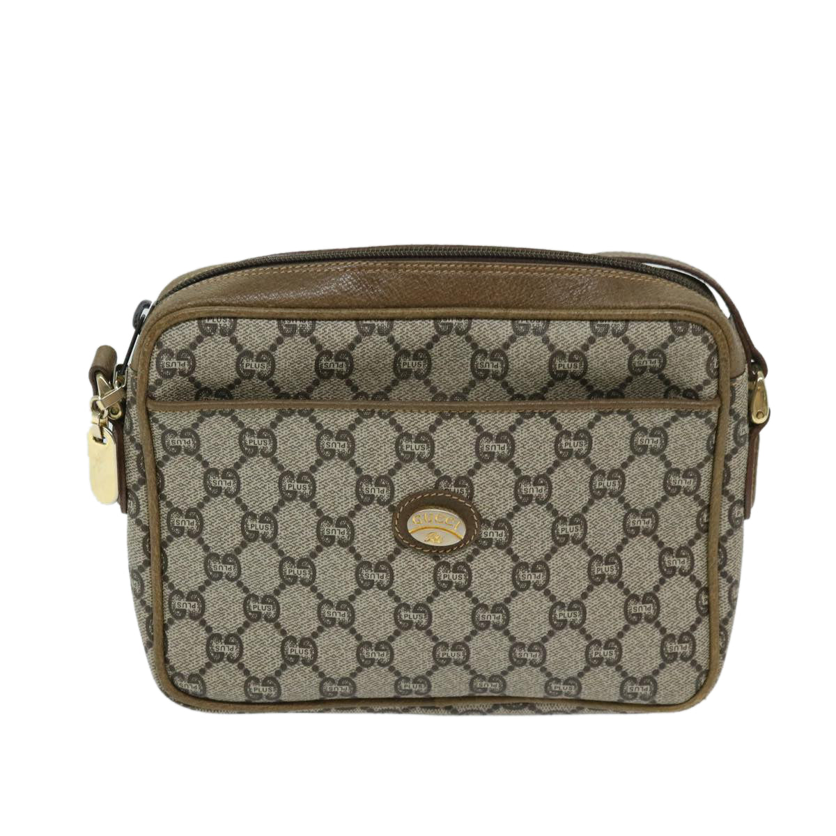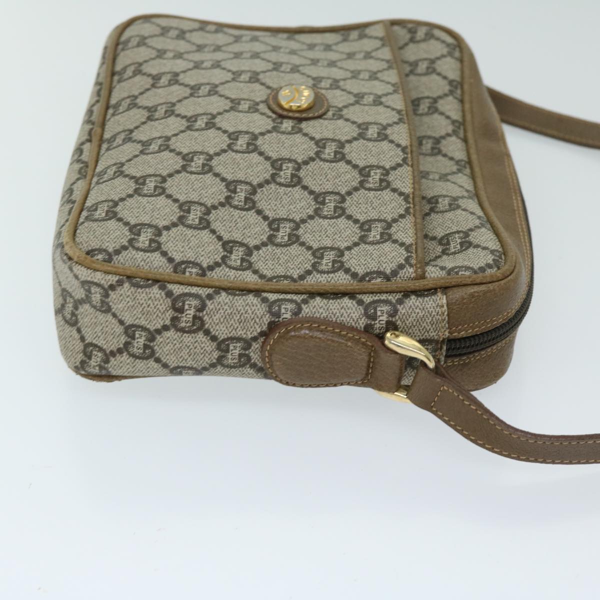 GUCCI GG PLUS Canvas Shoulder Bag PVC Beige Auth 68160