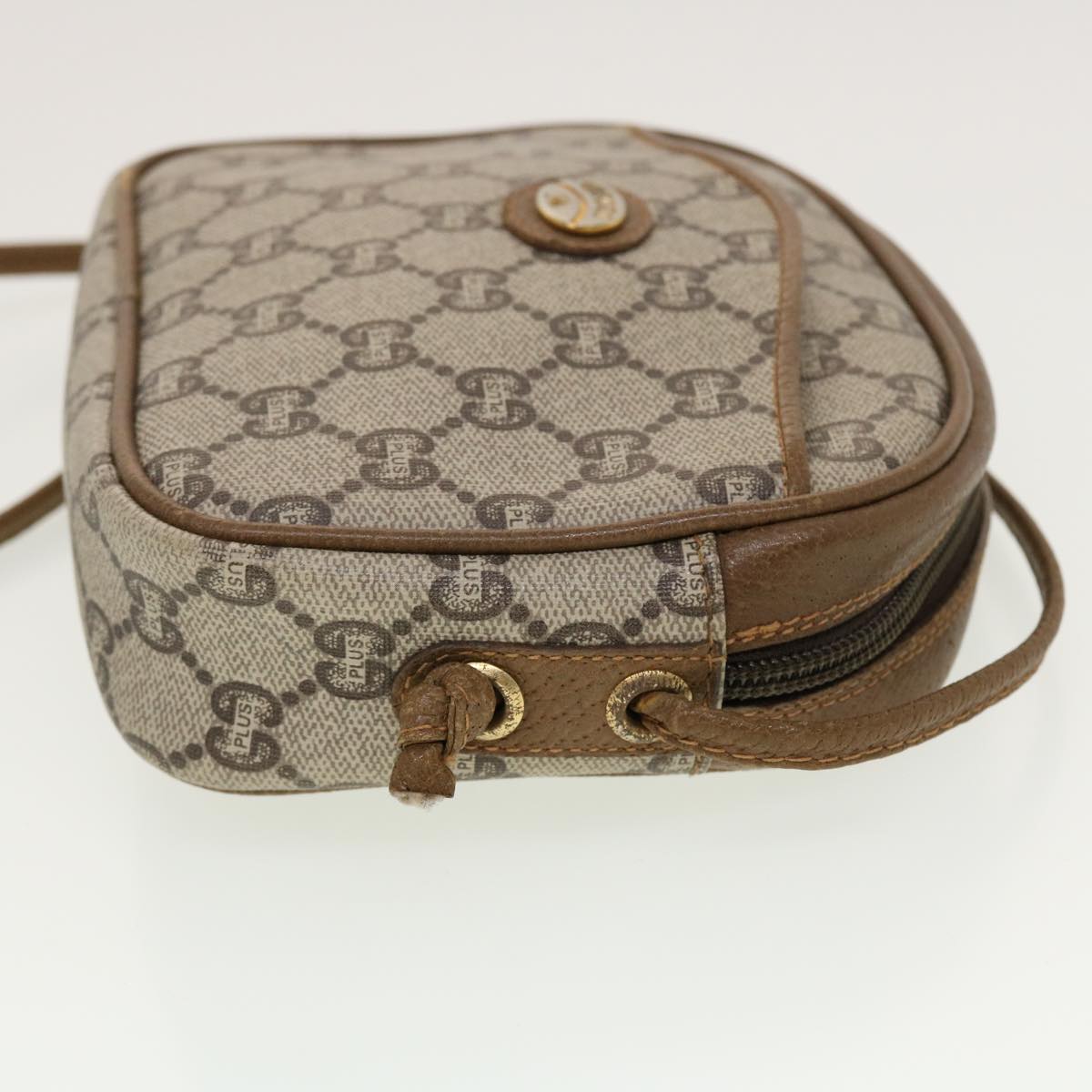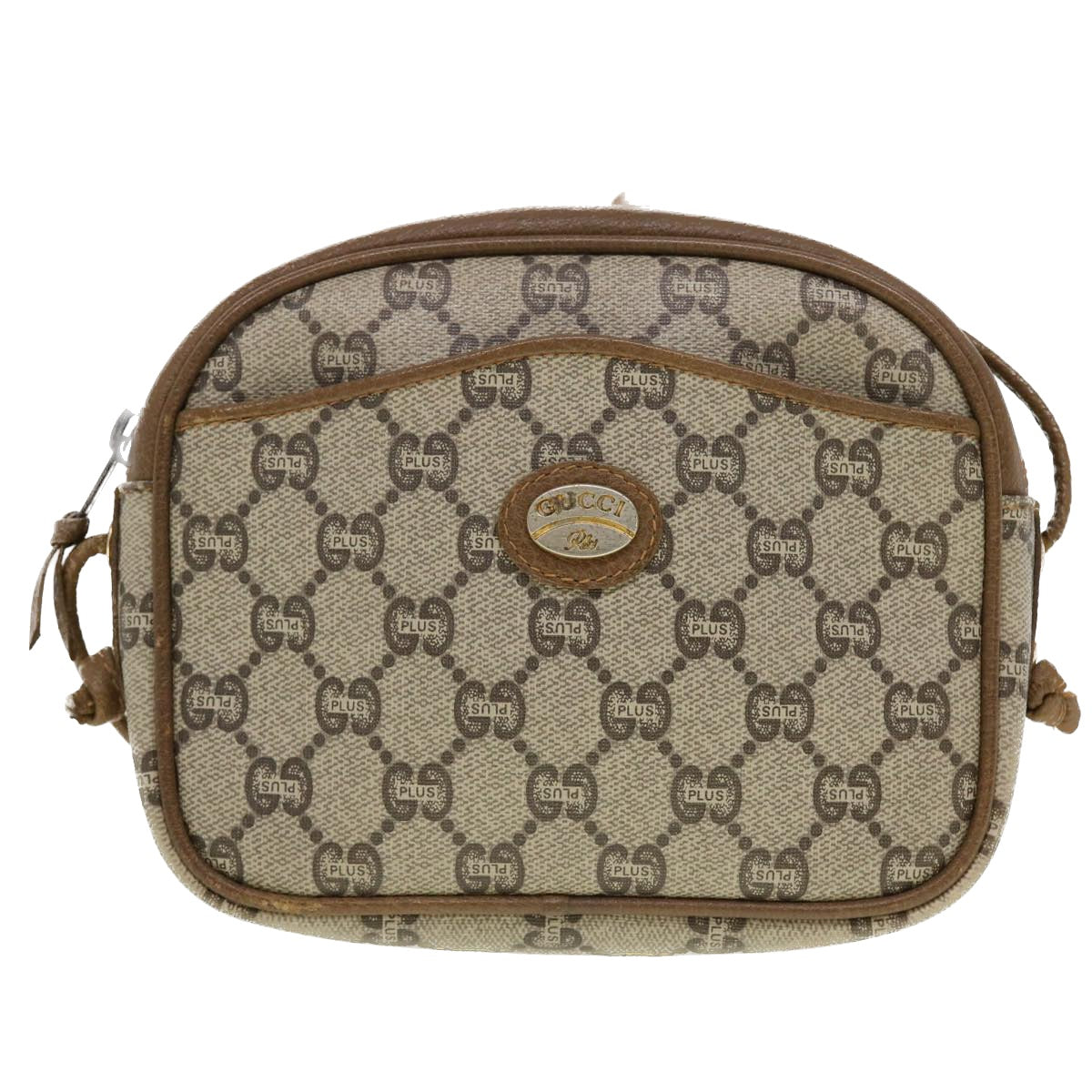 GUCCI GG Plus Canvas Shoulder Bag PVC Leather Beige th3681