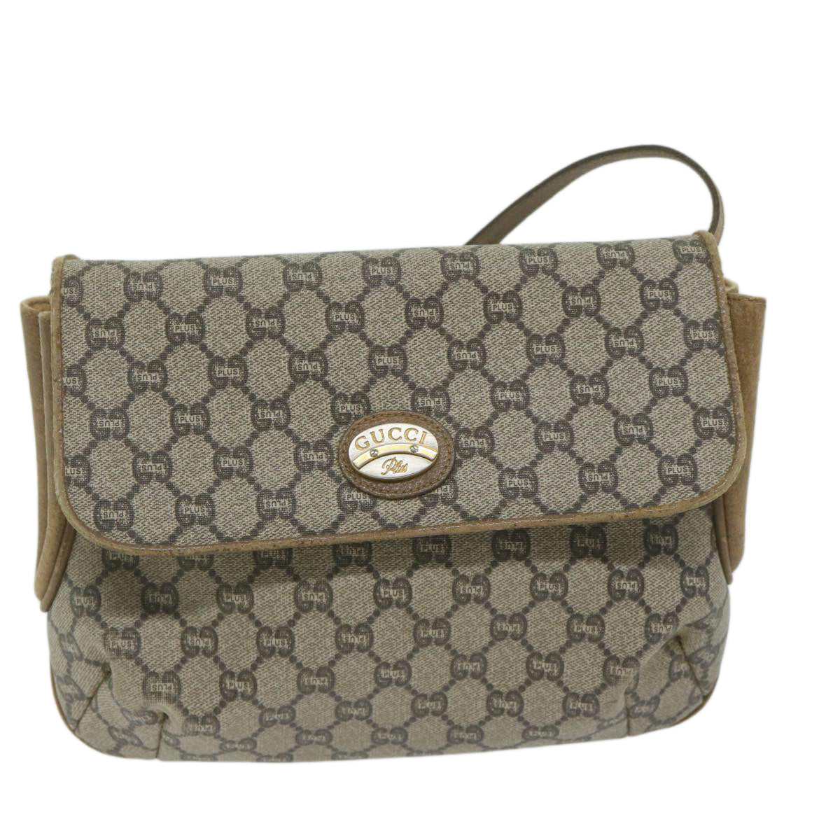 GUCCI GG Plus Supreme Shoulder Bag PVC Leather Beige Auth th4389
