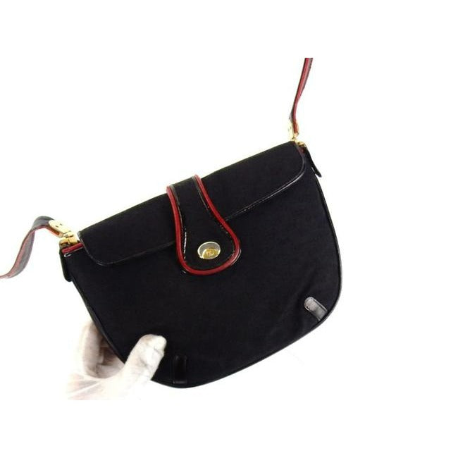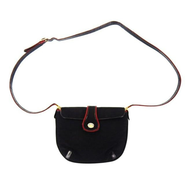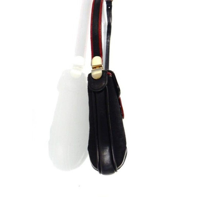 For sale is a RARE, Gucci, black micro Guccissima print canvas and black leather cross body/shoulder bag with red leather trim, an envelope top, and flap snap closure, in MINT vintage condition! This purse is a rare version of the iconic cross body pouchette style from Gucci that will be the only black purse you will need!