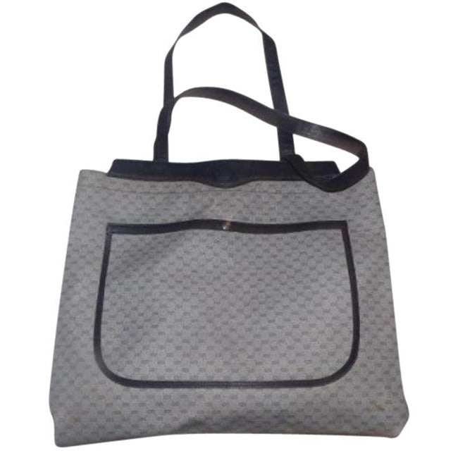For sale is a vintage, designer, Gucci, small G logo design on coated canvas and leather tote in shades of blue with chrome hardware and large front pocket! It is a classic, gorgeous bag that needs to go to a new, loving home!