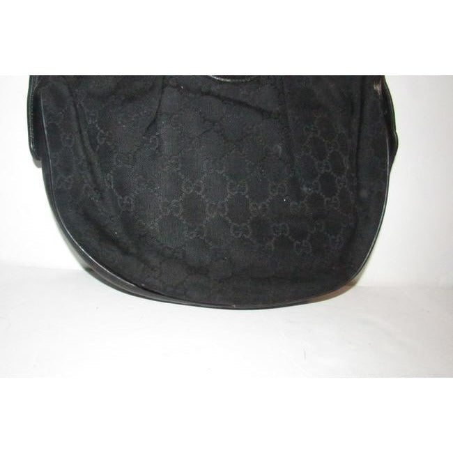 The bag is a large, hobo style purse with a top zip- I believe this style is evolved into 'Sukey'. It has one, large interior compartment with a zip pocket. The purse is made of black Guccissima print canvas