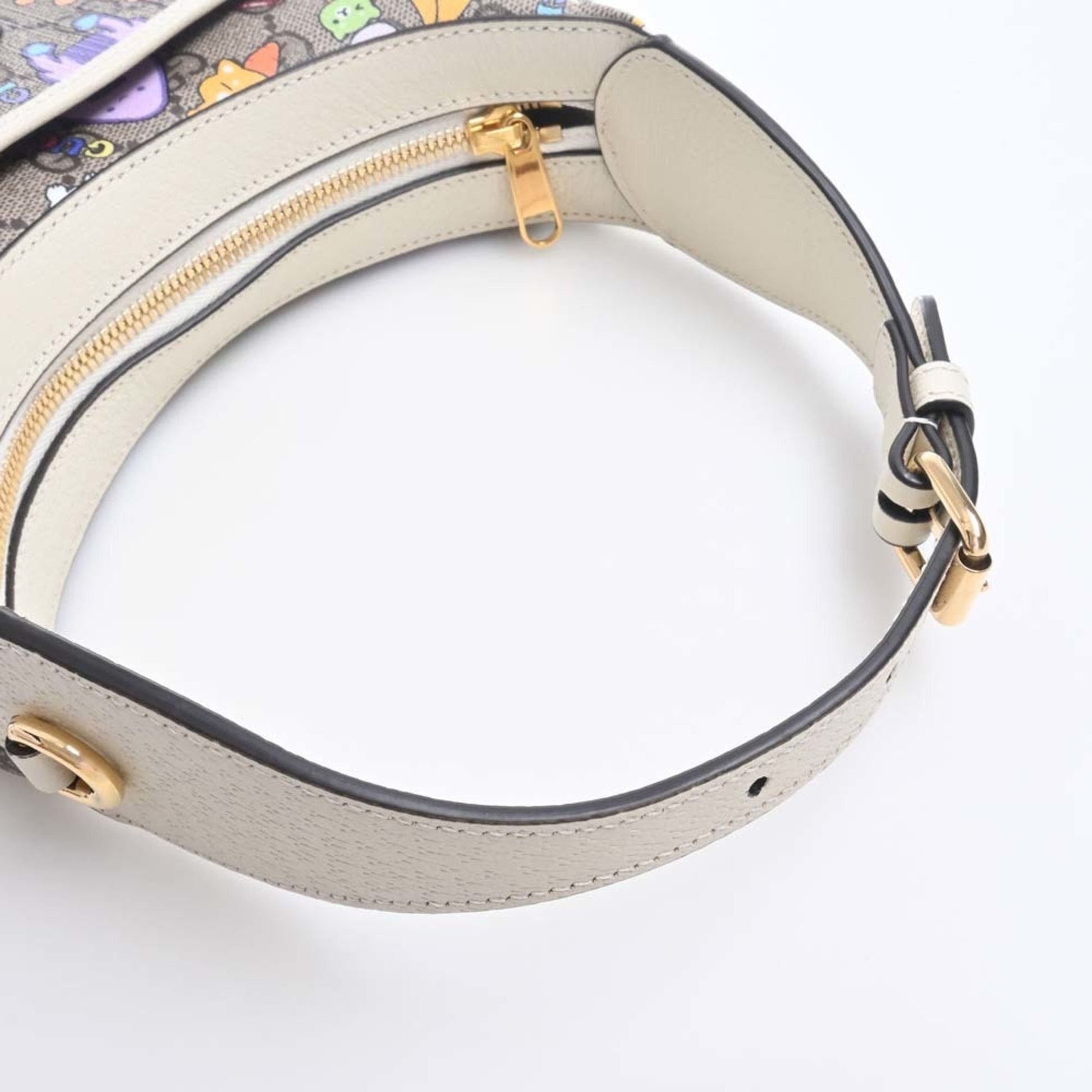 GUCCI GG Supreme Half Moon Shape Animal Print One Shoulder Bag 726843 Beige White Women's