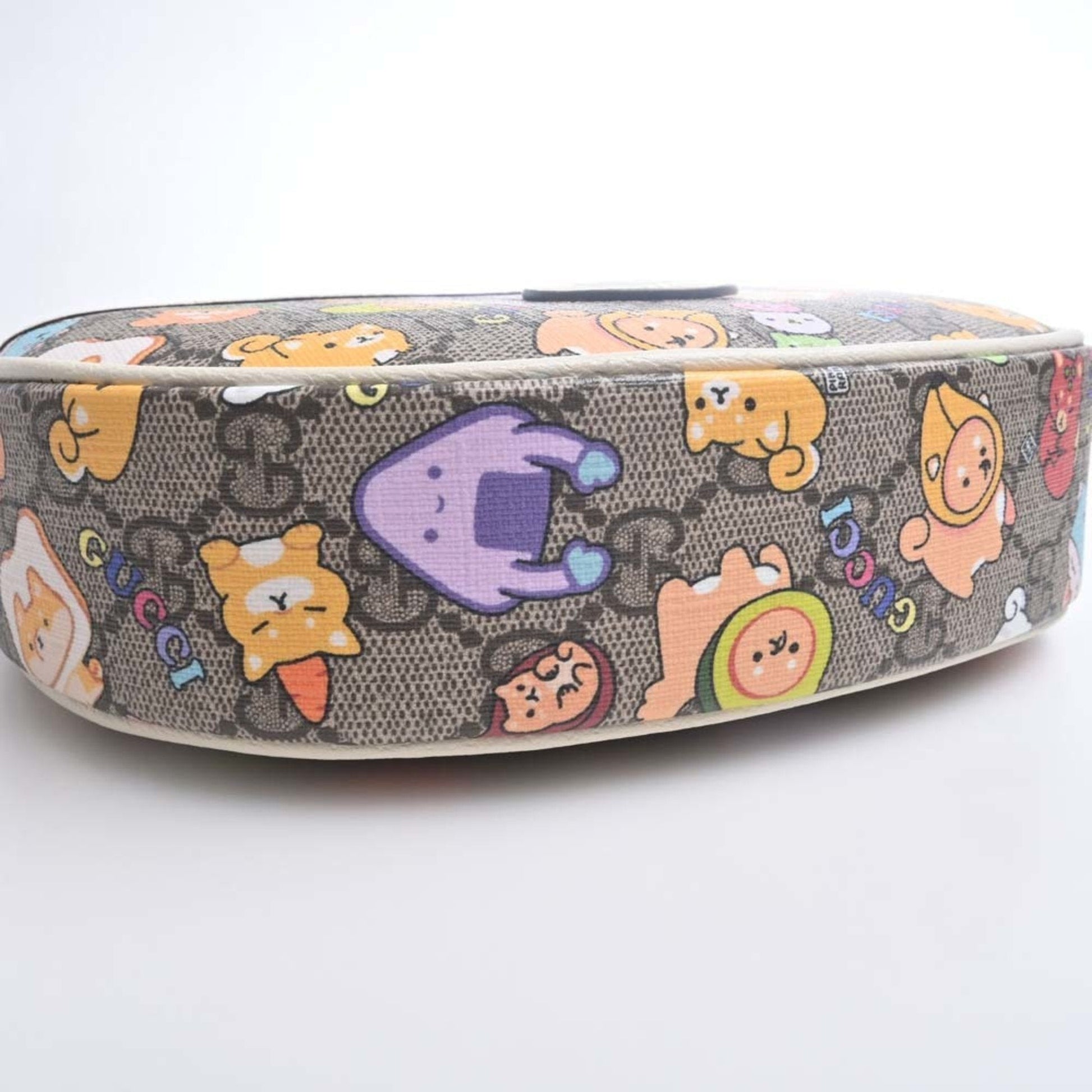 Gucci GG Supreme Half Moon Shape Animal Print One Shoulder Bag 726843 Beige White Women's