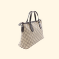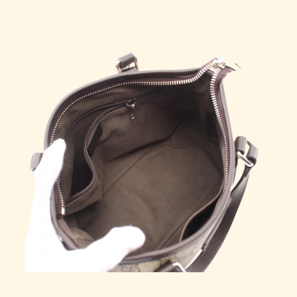Gucci Gg Supreme Handbag Pvc Leather Beige Dark Brown 2Way