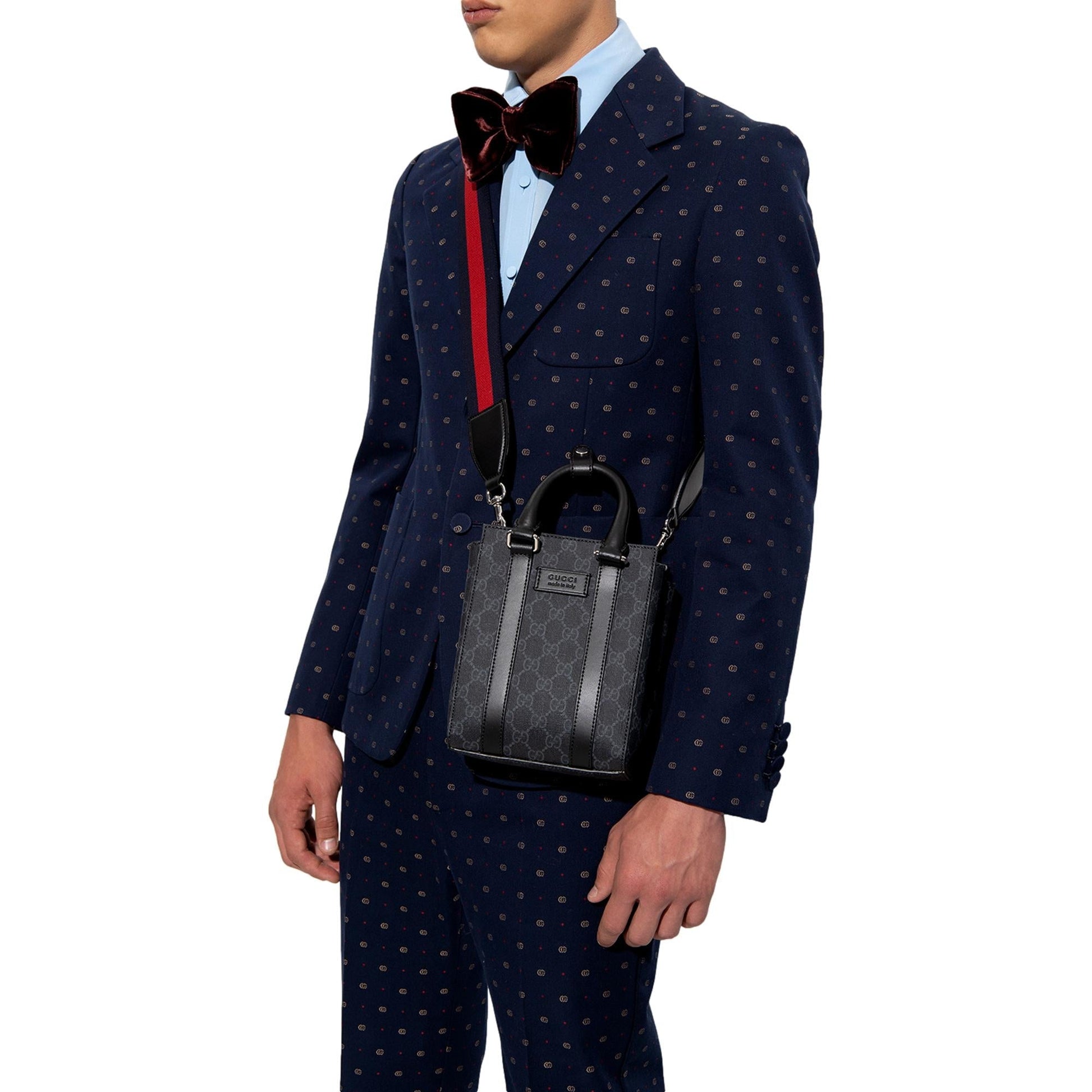 Gucci GG Supreme Monogram Black Canvas Leather Trim Web Strap Mini Tote Bag