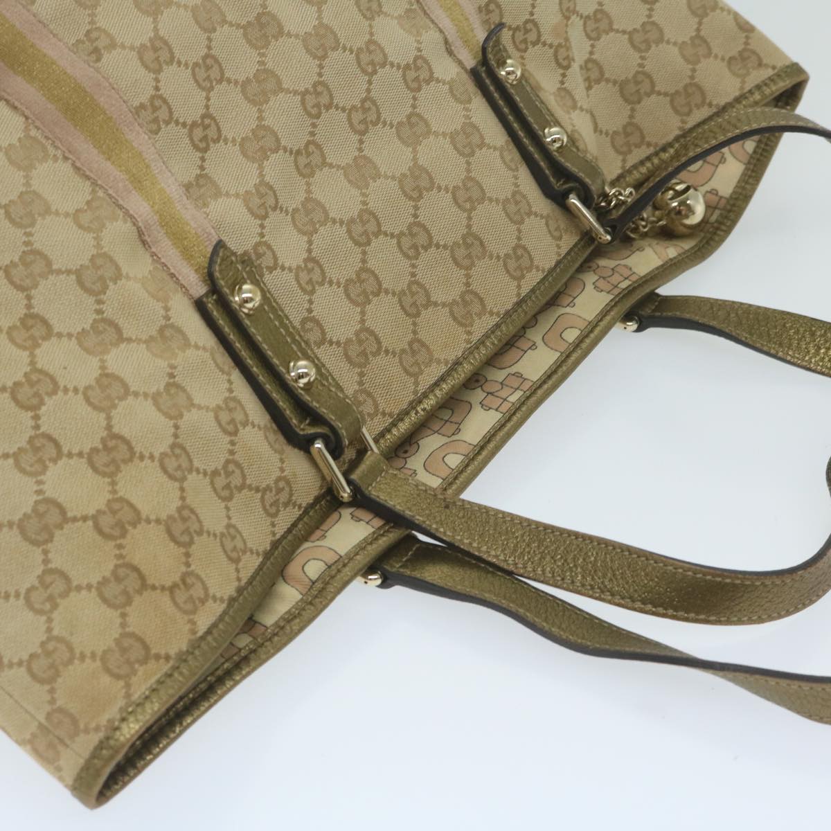 GUCCI GG Supreme Sherry Line Tote Bag Beige Gold pink 139260 Auth ki3995