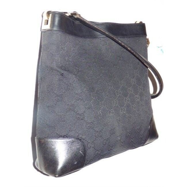 For sale is a vintage Gucci, black canvas with large G logo print and leather, one strap, hobo style purse, with gold hardware accents with its dust bag! This is an extremely hard to find style in excellent vintage condition- perfect for everyday! Gucci has brought bag this style with an MSRP of over $1100! No one needs to know you have the vintage original for a fraction of the price!