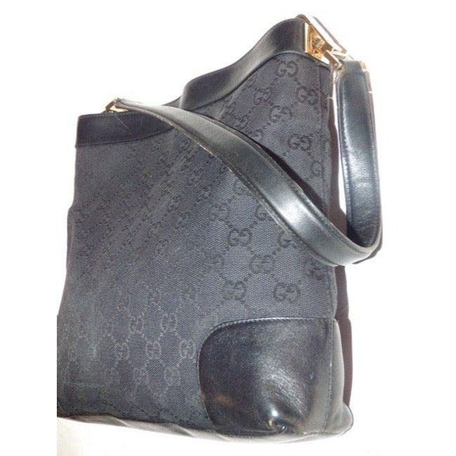 Gucci Black Canvas with large G logo print/Leather Hobo with gold hardware & dust bag