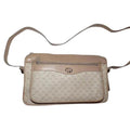 For sale is a vintage, Gucci, small G logo print coated canvas & leather, shoulder bag with exterior pocket in shades of ivory and tan/beige! It is a classic style that would be great used as a signature purse or as your everyday purse!