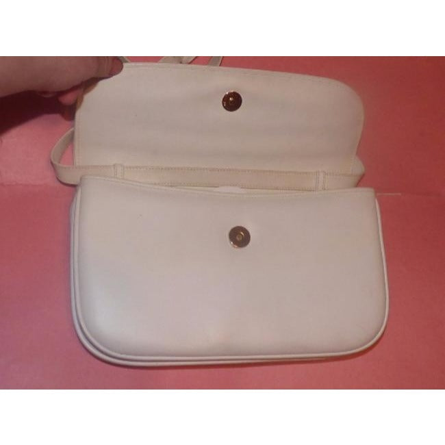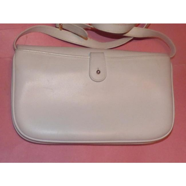 This is a fabulous, 1970's-80's, GUCCI, leather, classic cross body purse/ shoulder bag has a removable strap too become a clutch! It is made of glossy white leather with a classic, envelope, fold over front that snaps shut and back pocket. It has a soft, suede leather interior and three main compartments and one zip pocket inside. Lots of room for everyday or special occasions- it has an accordion style design that can expand to up to 4 inches!
