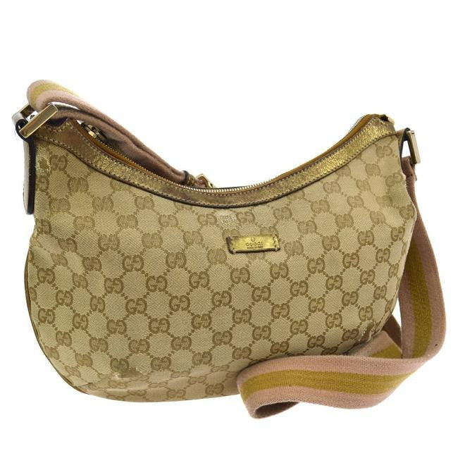 Gucci Gg Supreme Shoulder W Canvas Leather Sherry Stripe Strap Guccissima Print Gold Pink Tan
