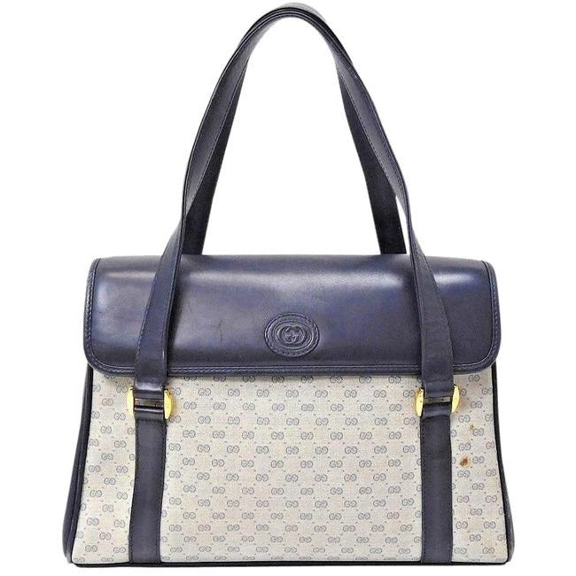 For sale is a Gucci, unique, navy blue micro Guccissima print coated canvas and navy leather, large satchel with envelope top, two strap shoulder bag with multiple interior compartments and an exterior back zip pocket! It is a unique take on a classic satchel style that would be great used as an everyday purse!