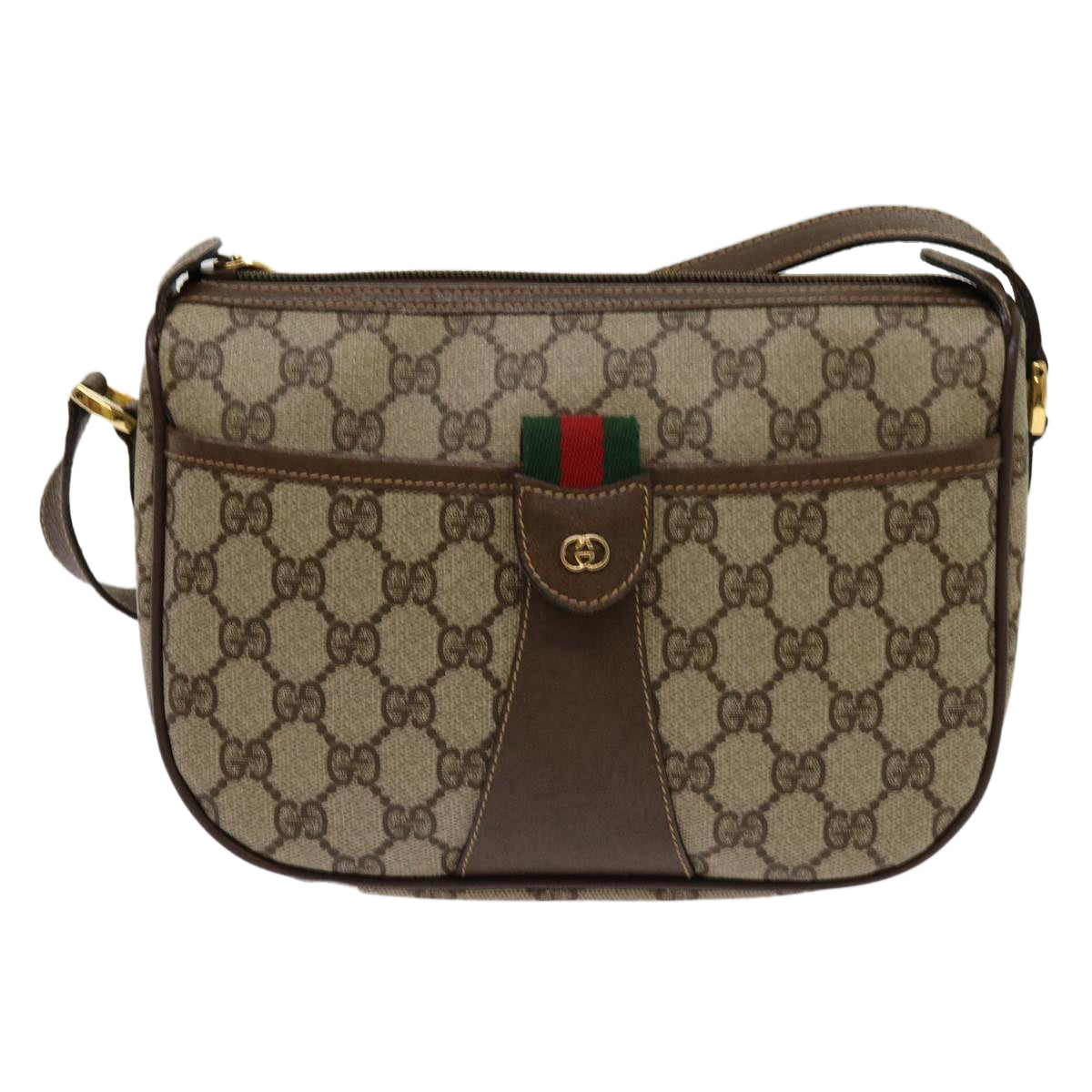 GUCCI GG Supreme Web Sherry Line Shoulder Bag Beige 001 58 6177 Auth yk11366