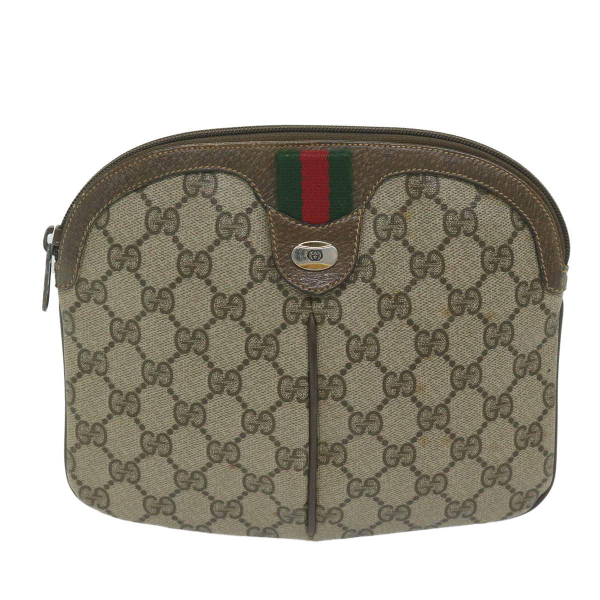 GUCCI GG Supreme Web Sherry Line Shoulder Bag Beige Red 004 02 047 Auth ar11083