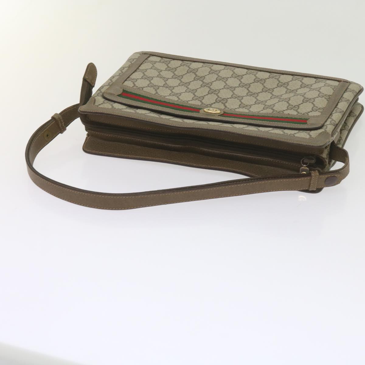 GUCCI GG Supreme Web Sherry Line Shoulder Bag Beige Red 41 02 090 Auth am5260