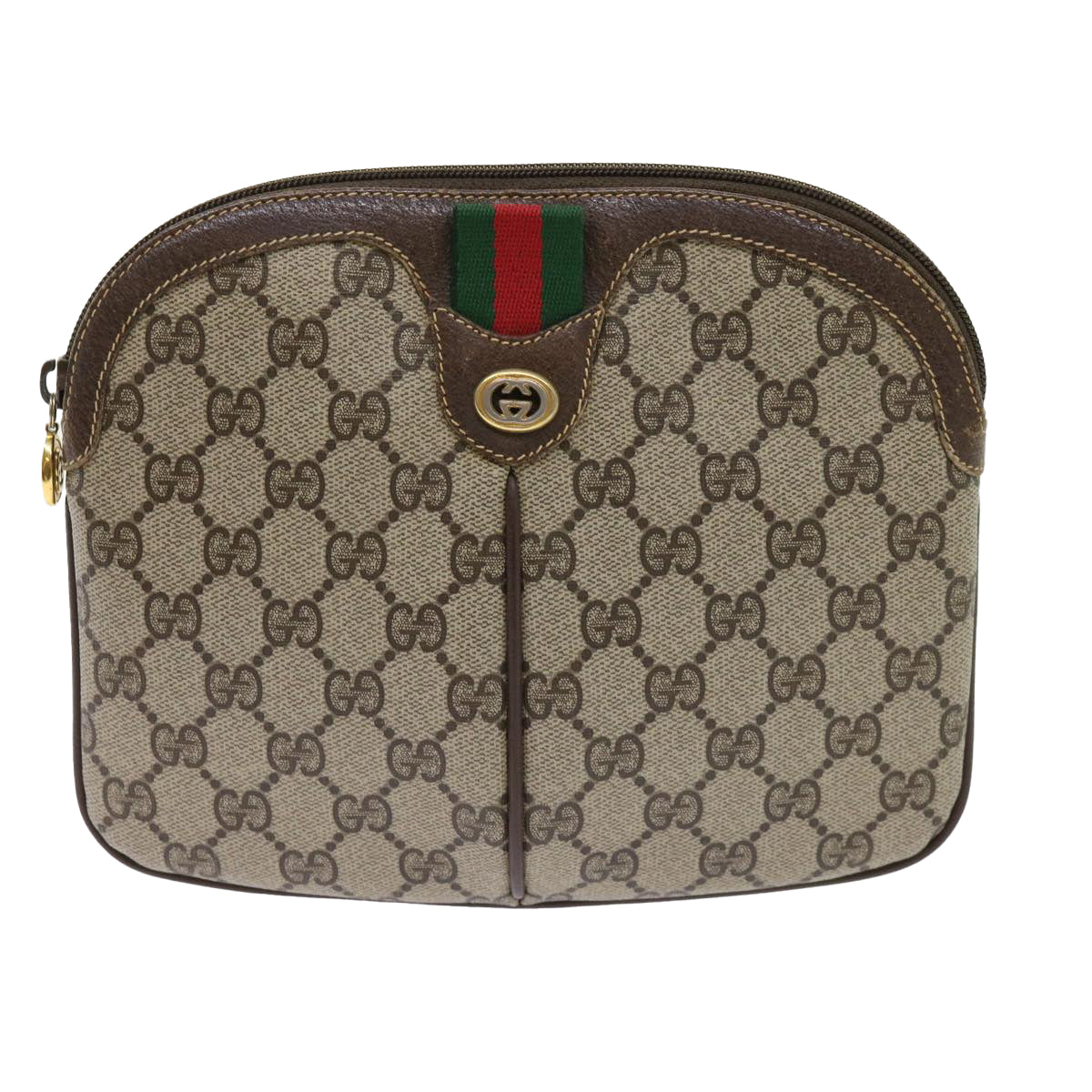 GUCCI GG Supreme Web Sherry Line Shoulder Bag Beige Red 904 02 047 Auth 63818