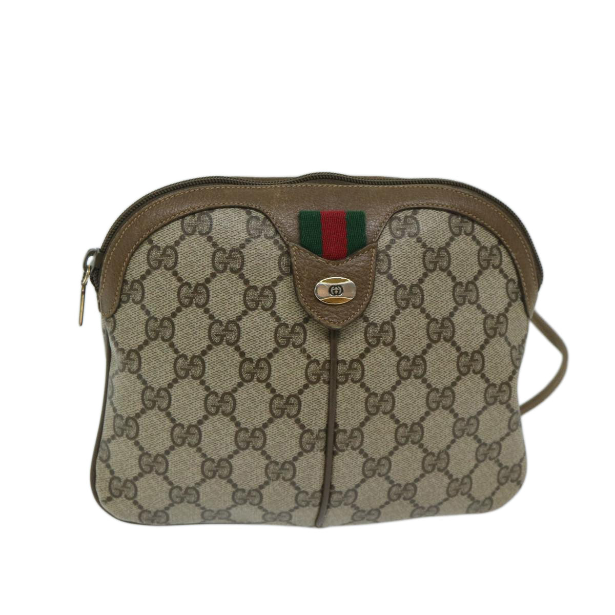 GUCCI GG Supreme Web Sherry Line Shoulder Bag Beige Red 98 02 047 Auth ki4228