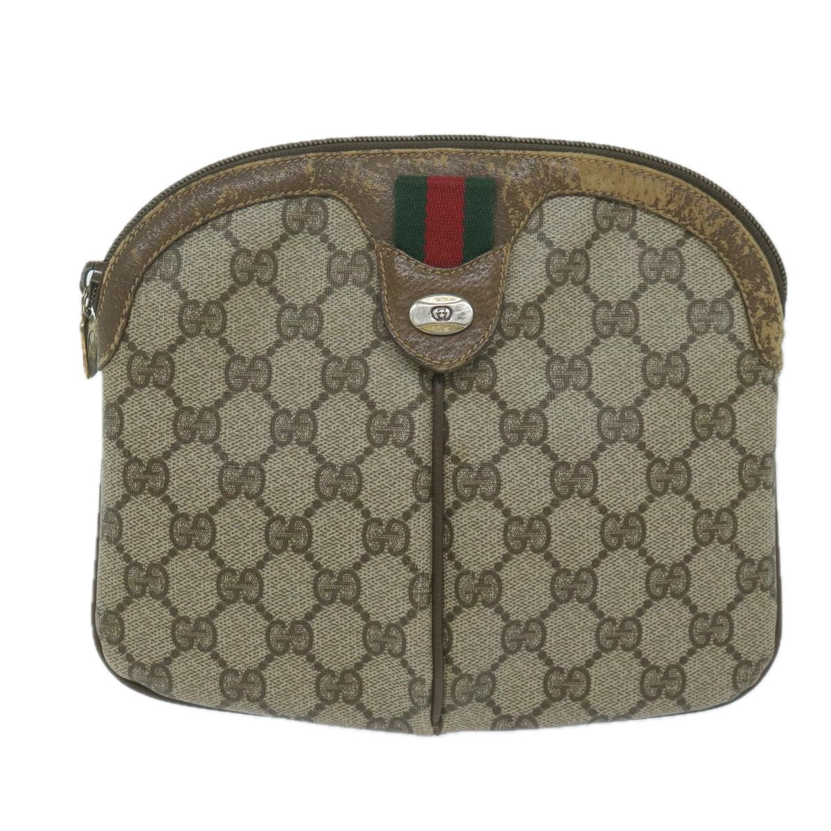 GUCCI GG Supreme Web Sherry Line Shoulder Bag Beige Red 98 02 047 Auth th4497
