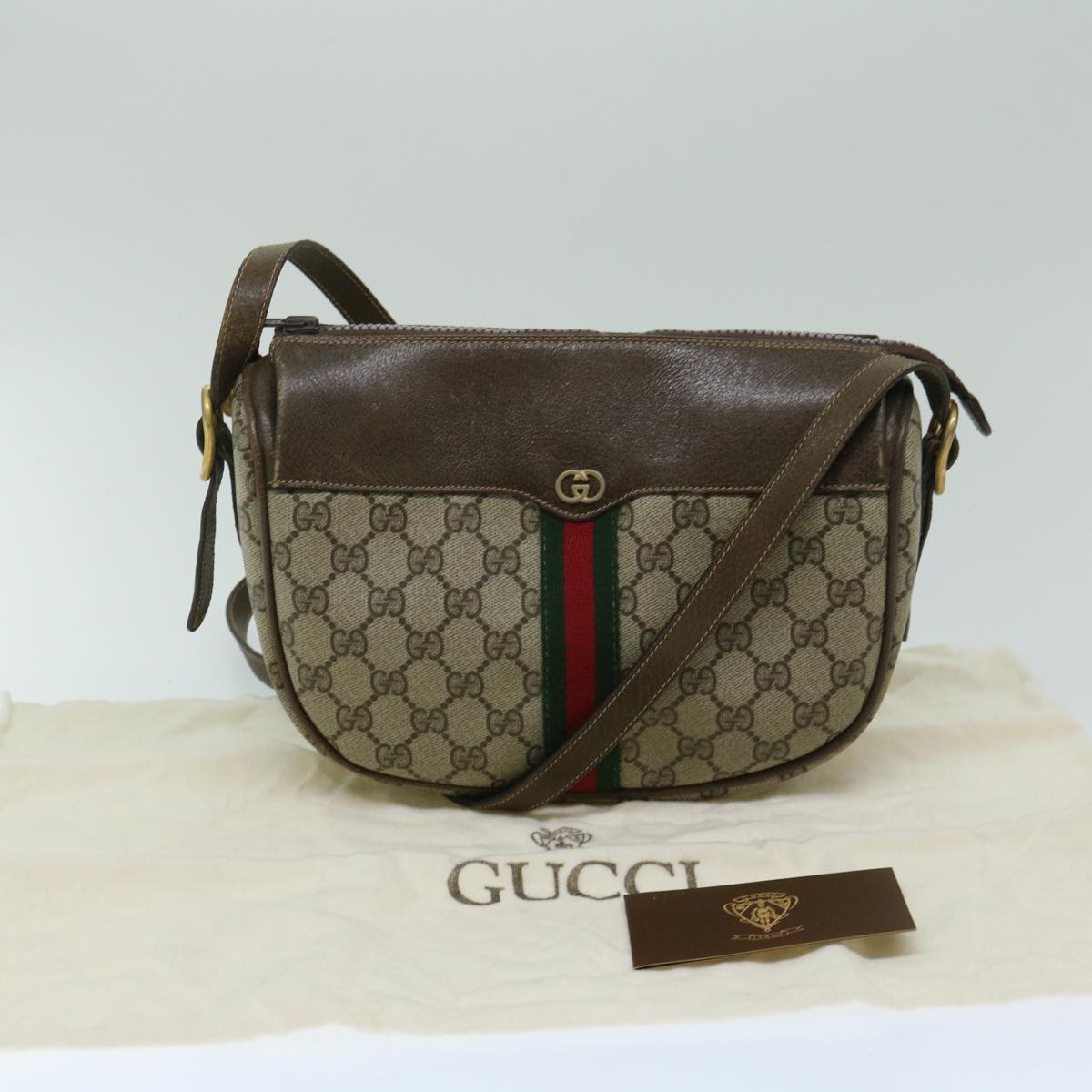 GUCCI GG Supreme Web Sherry Line Shoulder Bag PVC Beige 67 01 4001 Auth 68202