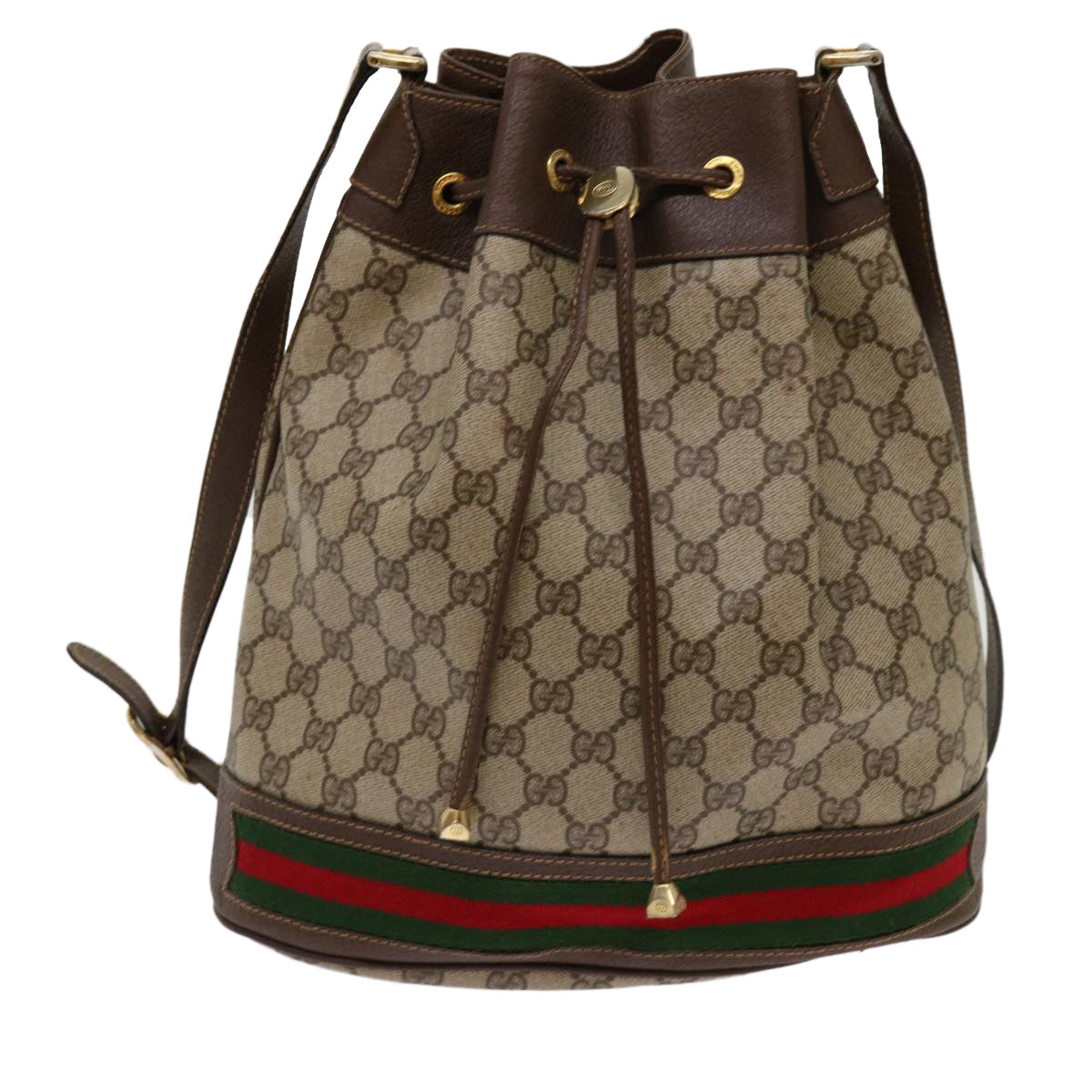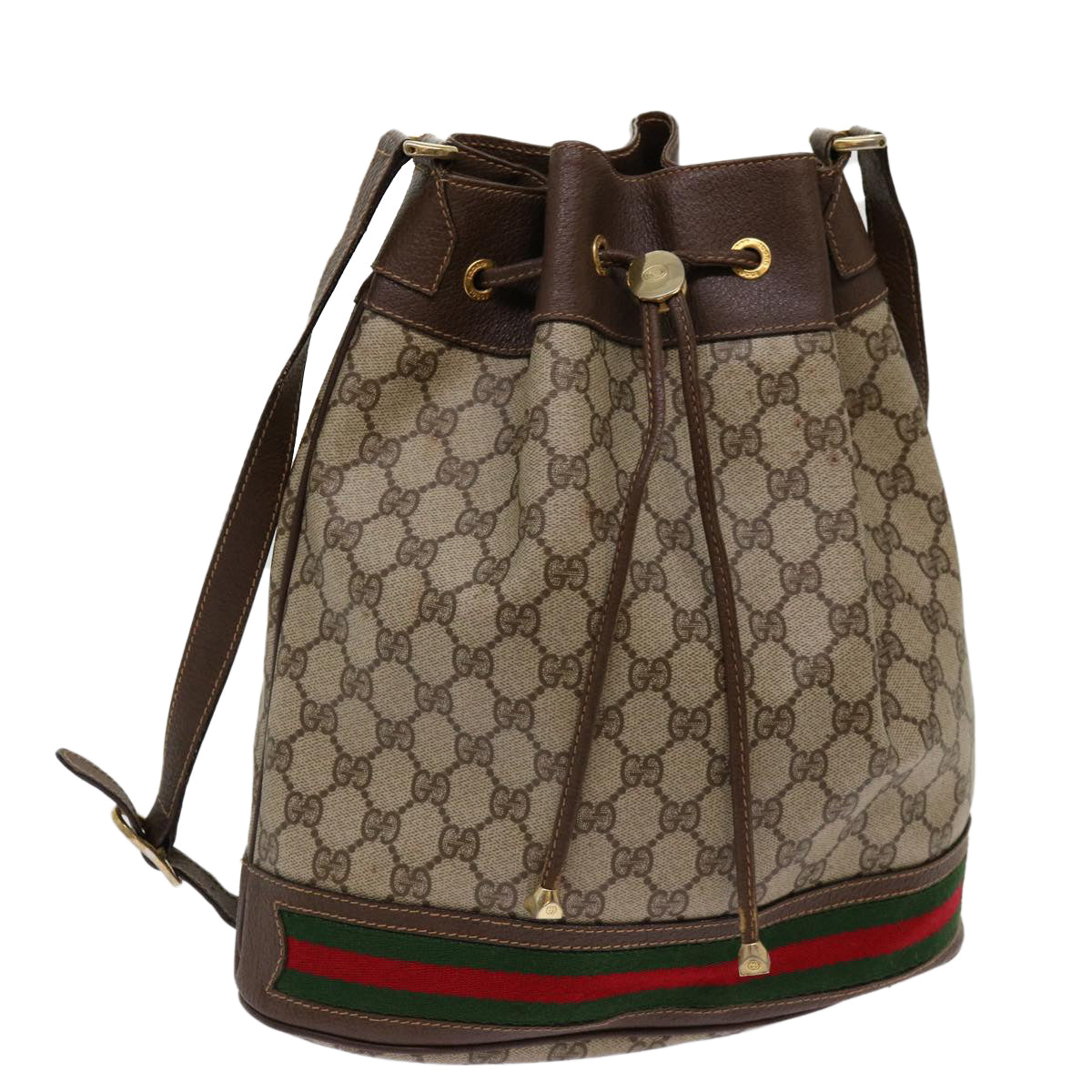 GUCCI GG Supreme Web Sherry Line Shoulder Bag PVC Beige Red 40 02 085 Auth 69330