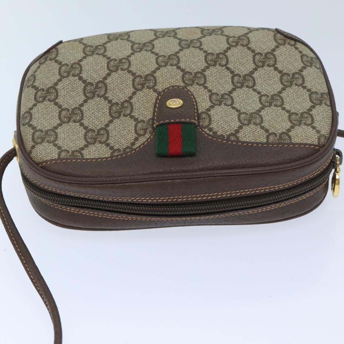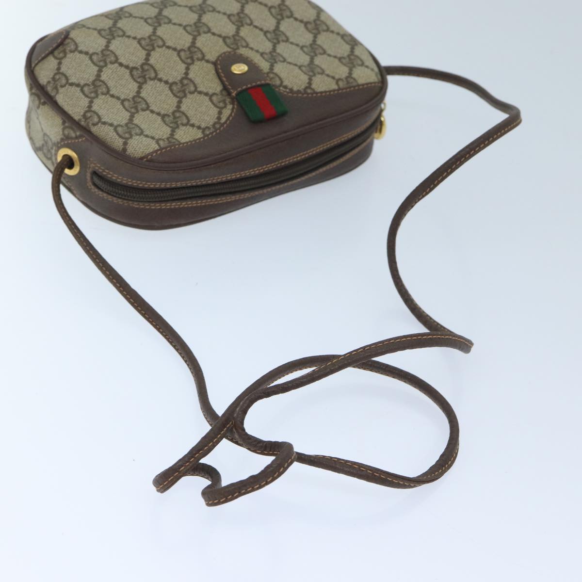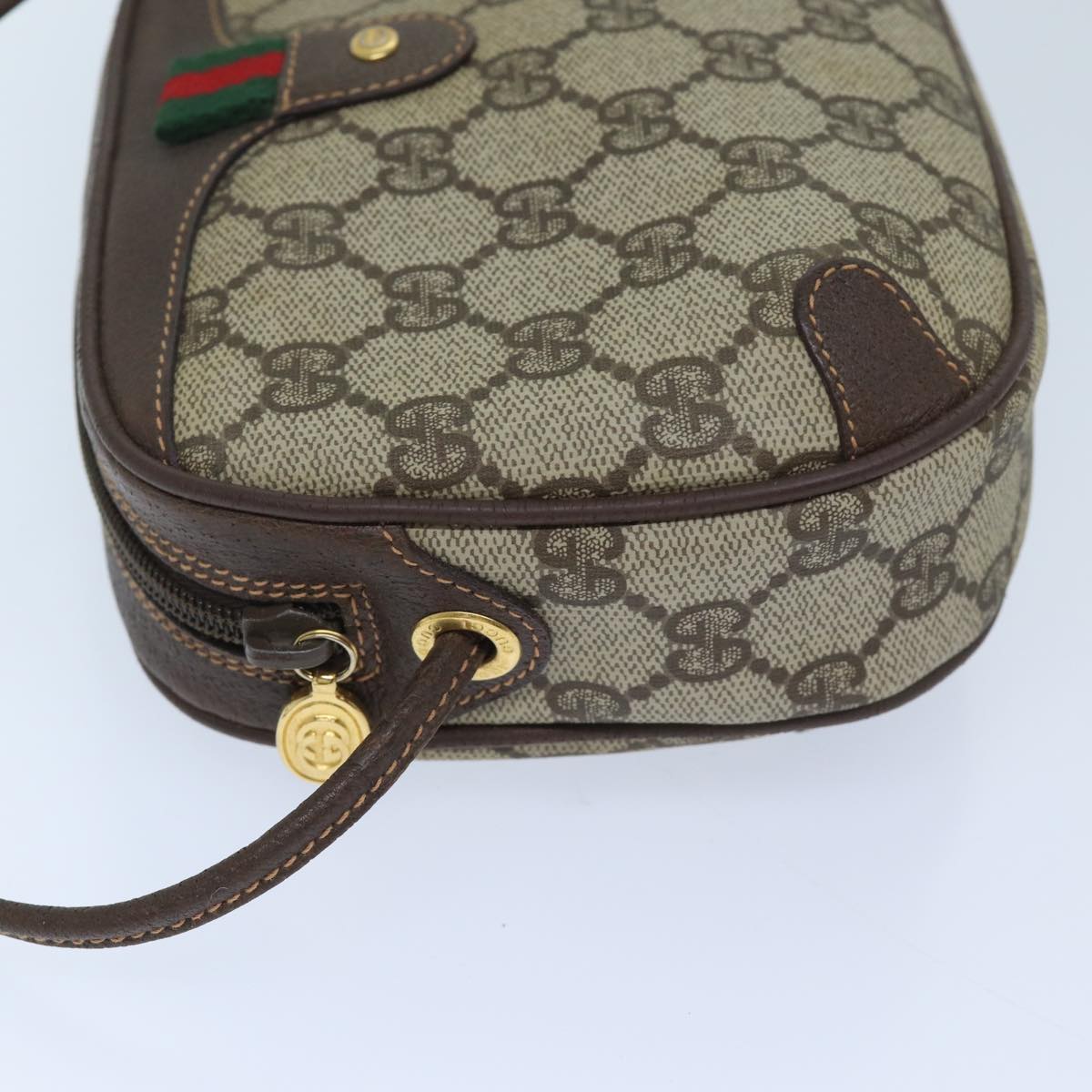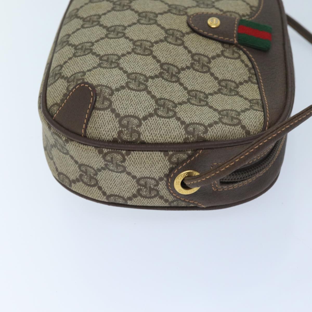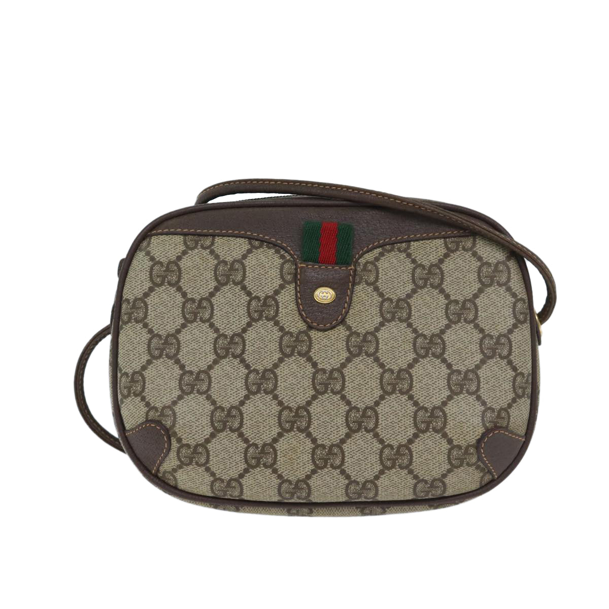 GUCCI GG Supreme Web Sherry Line Shoulder Bag PVC Beige Red Green Auth mr069