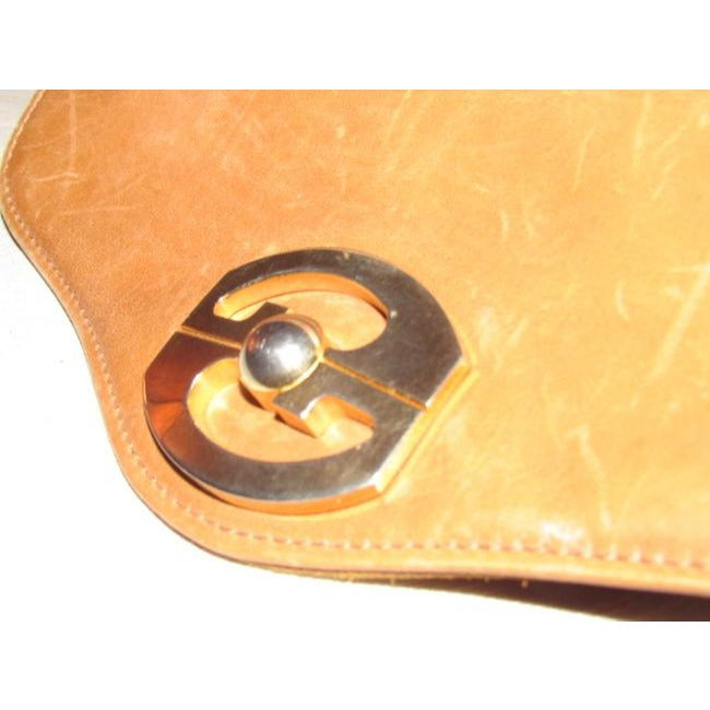 Gucci Gold Camel Leather Suede GG Logo Accent