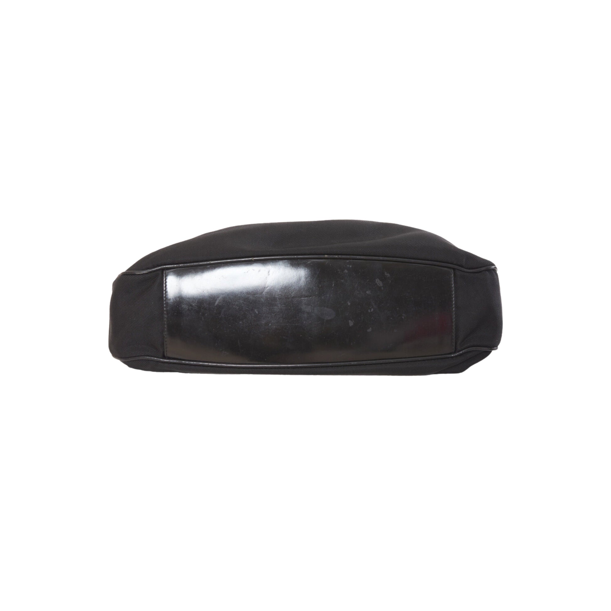 Glossy black leather details add a touch of luxury to the bag, while the durable canvas ensures its durability.