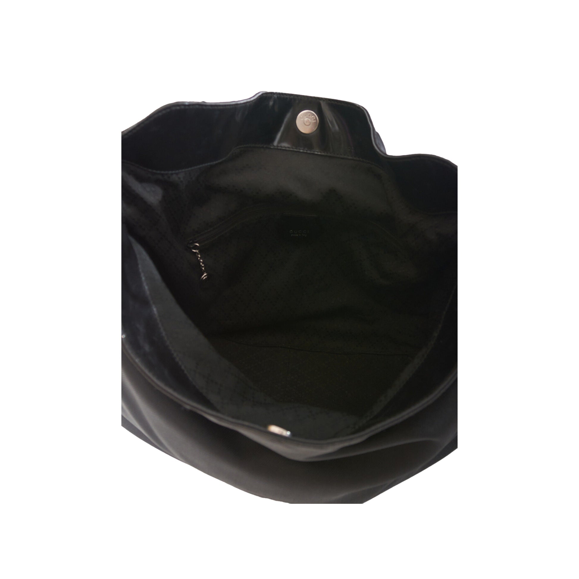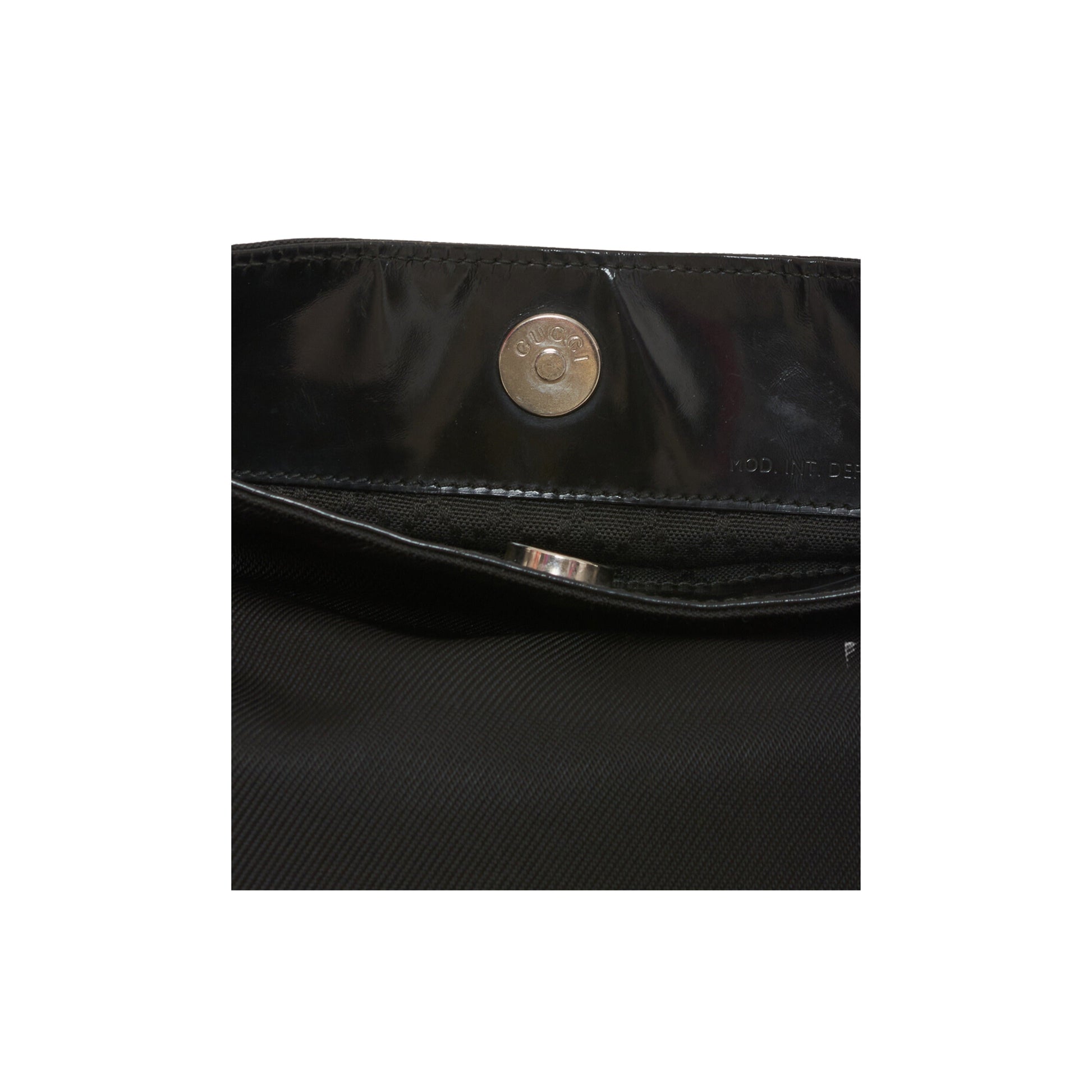 Made of high-quality canvas with glossy black leather trim, the iconic bamboo bag by Gucci features a beautiful hand-woven bamboo handle that lends an exotic and natural touch to its aesthetic.