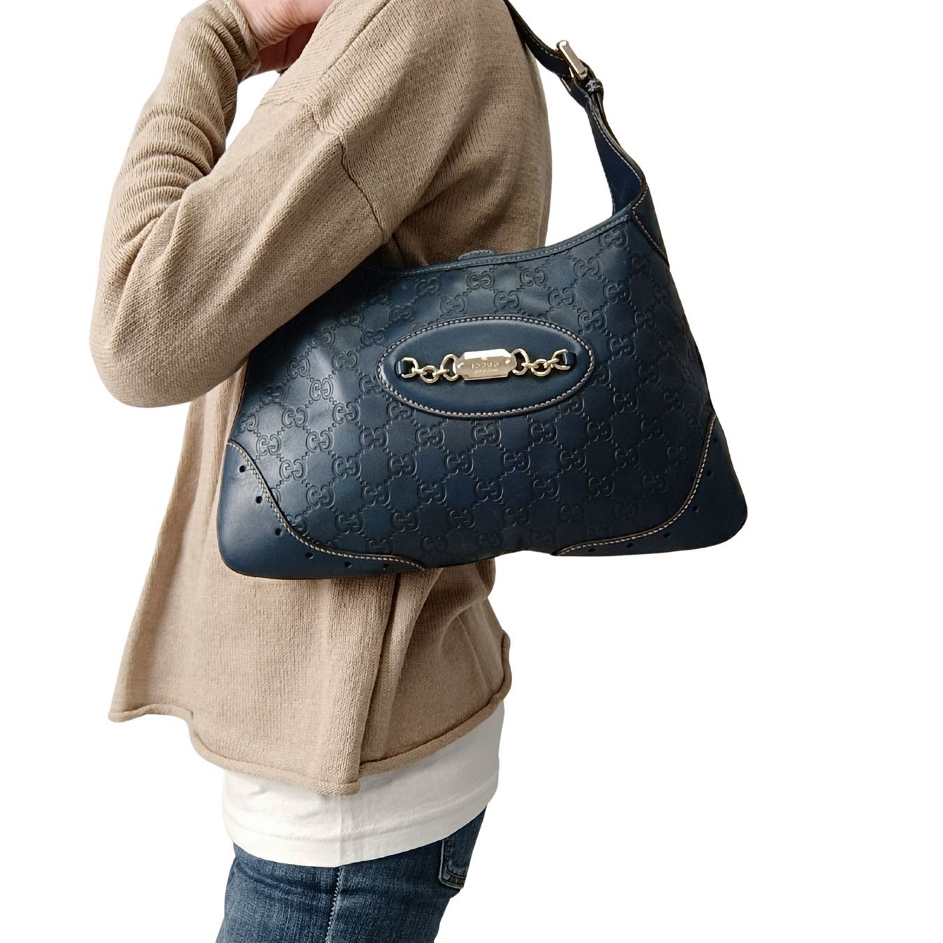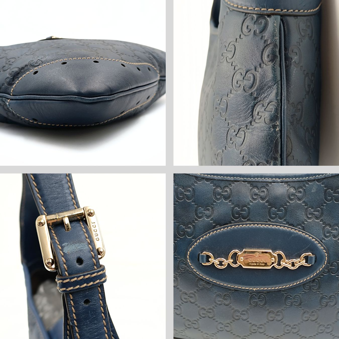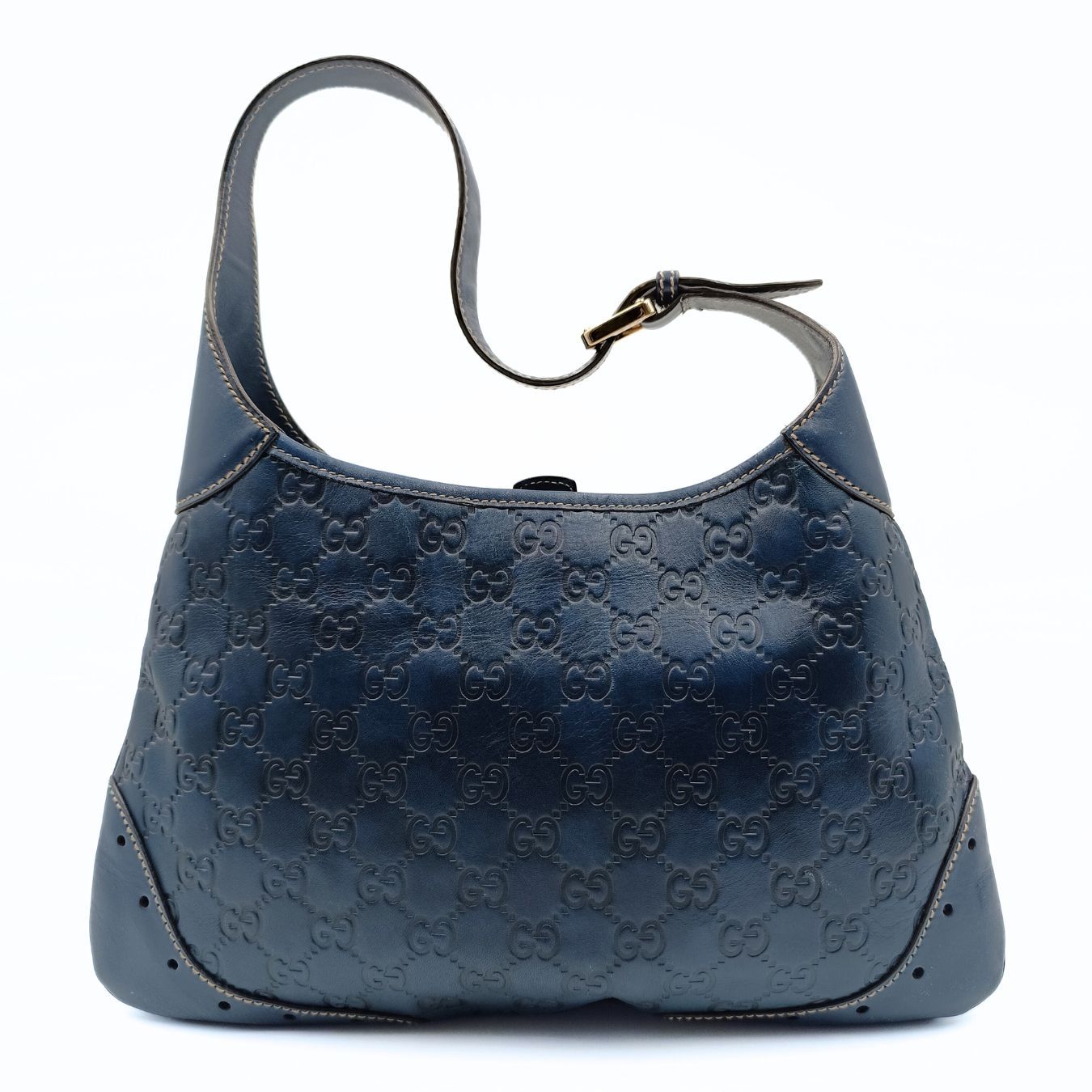 Gucci Guccissima shoulder bag in light blue leather.White stitching and steel finishes.Brown canvas interior with multipockets.Its general condition is very good, with only small scratches and discolorations.Complete with dustbag and tags.DIMENSIONS: L: 33 cm - H: 21 cm - W: 2 cm - Handle 22 cmAll our items are selected, carefully sanitized and ated by our experts.CODE: 5546B211BRAND: GucciMADE IN: ItalyITY CODE: 211521002404Blue colorMATERIAL: LeatherCONDITION: Good