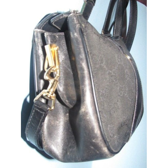 Gucci Guccissima Print Canvasleather Top Flap Snap Cross Bodyshoulder Black Leather And Gg Leather S