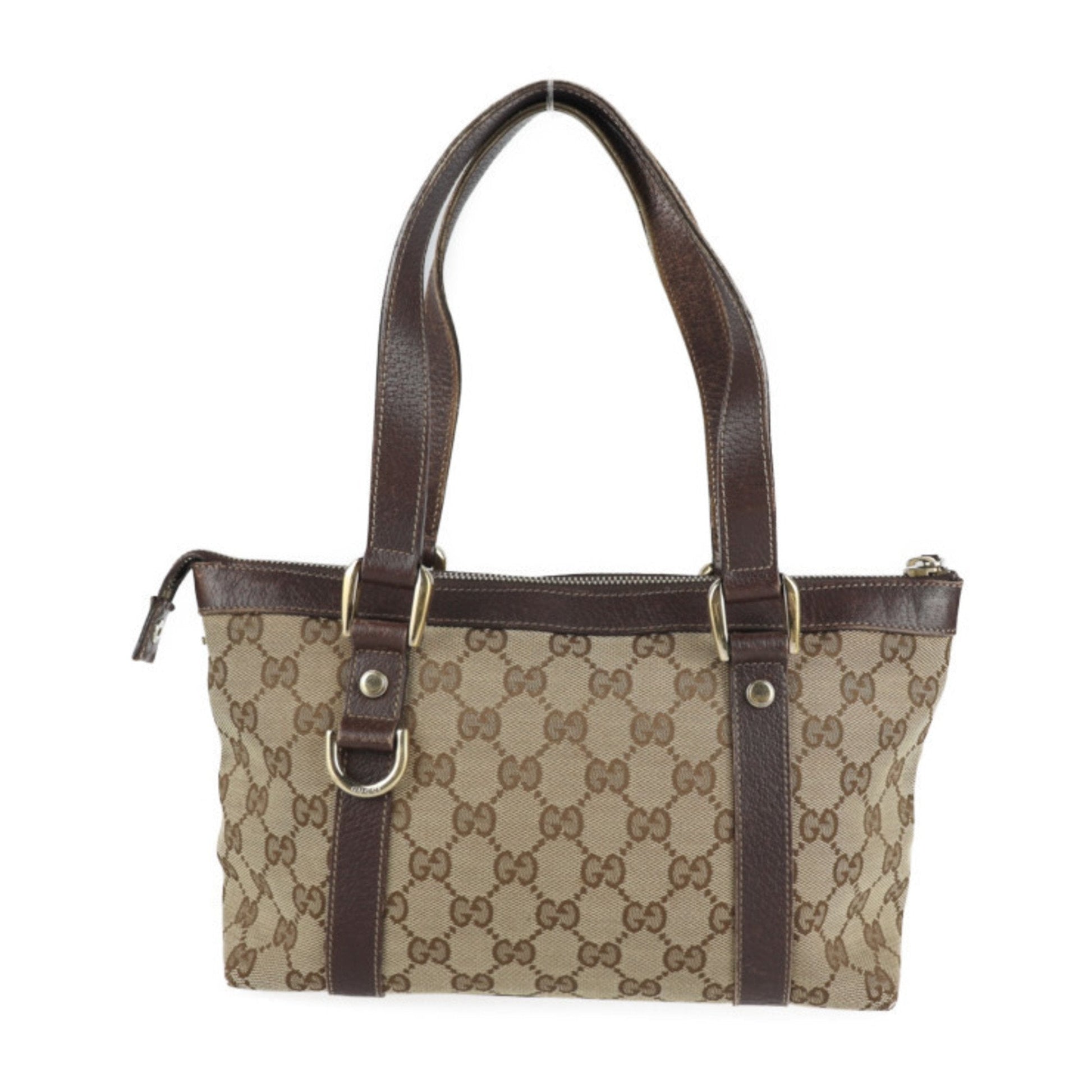 Gucci handbag 141471 GG canvas leather beige brown gold hardware tote bag