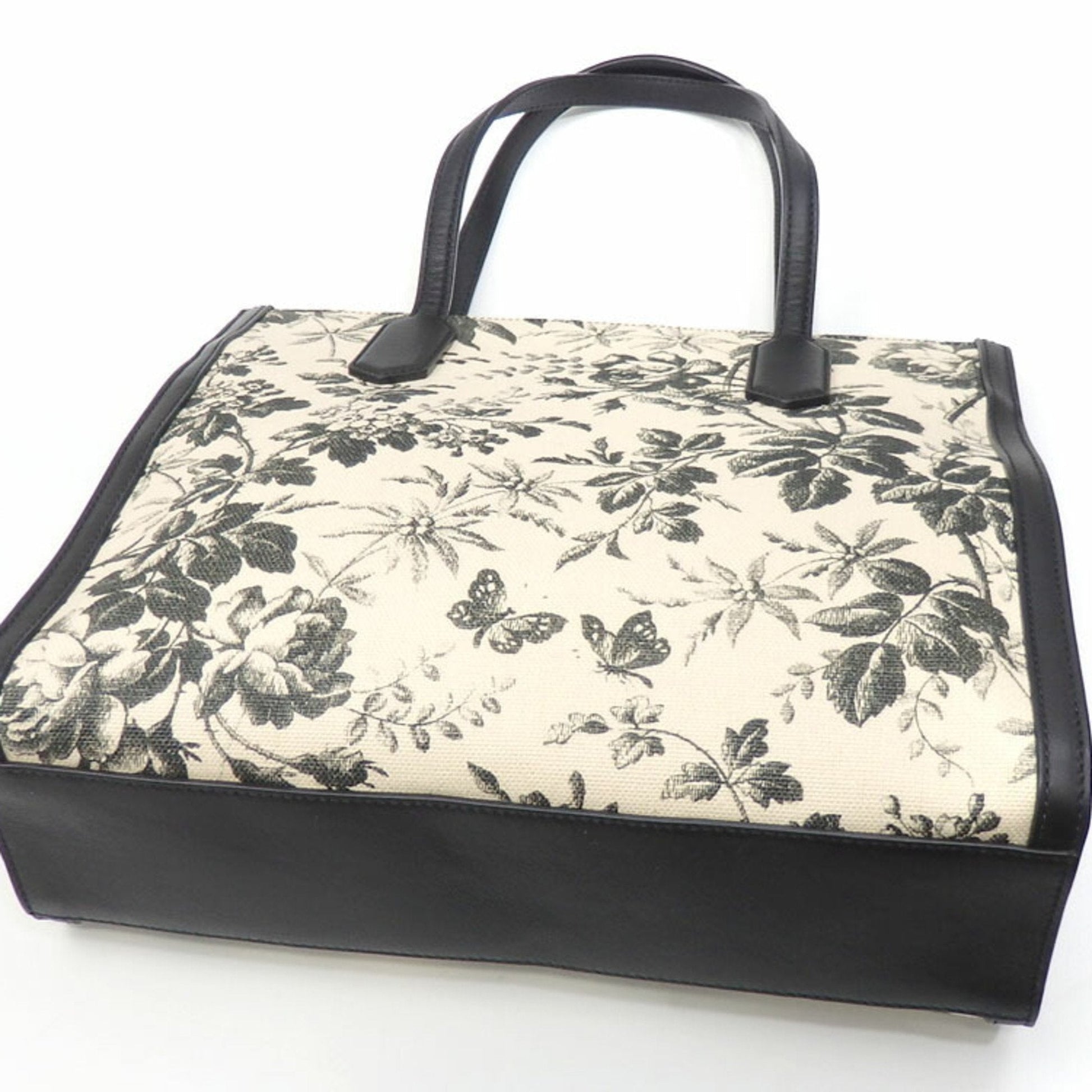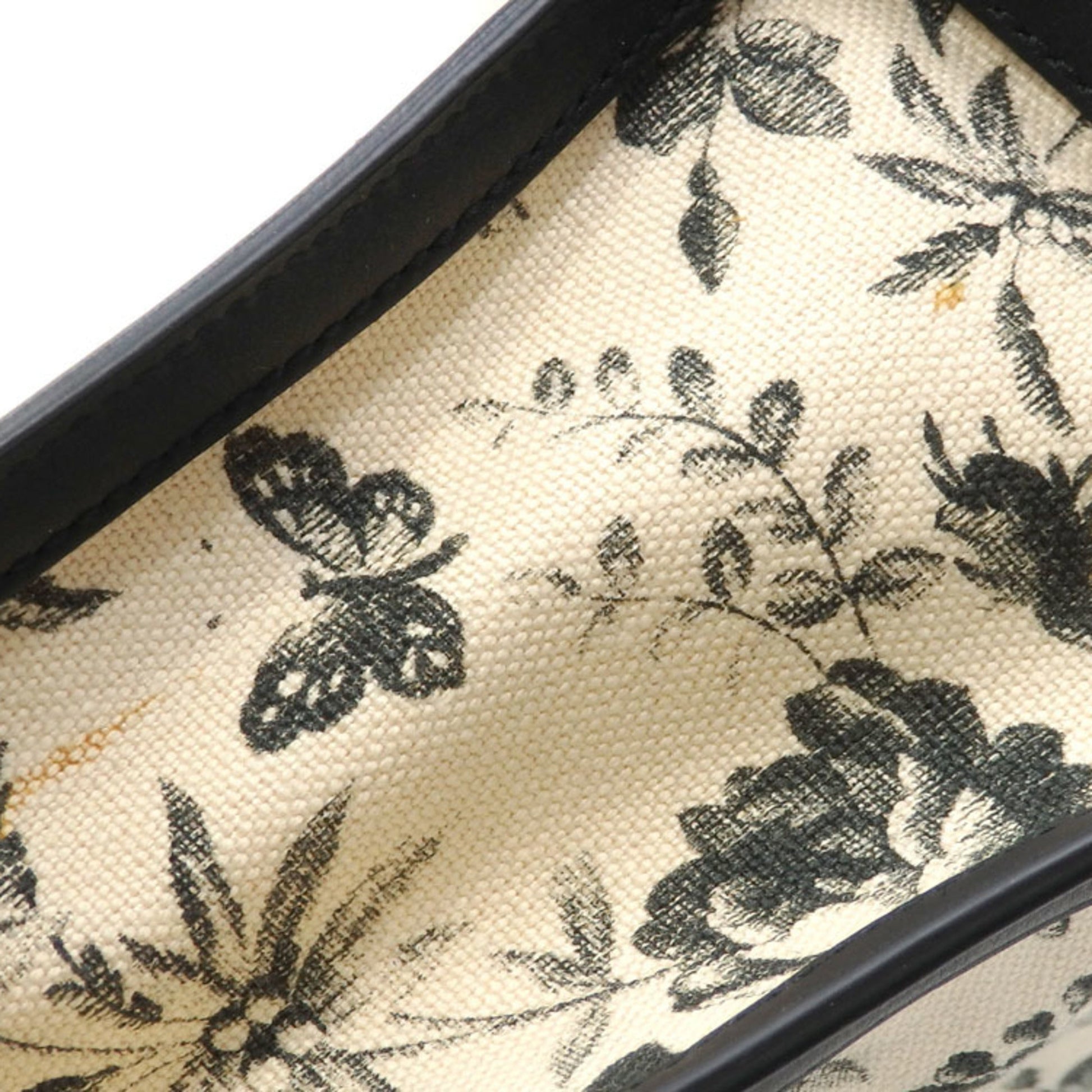 Gucci Herbarium Tote Bag Ladies Off-White Black Canvas Leather 432684 GG Ribbon Collection Day Limited Plant Butterfly