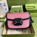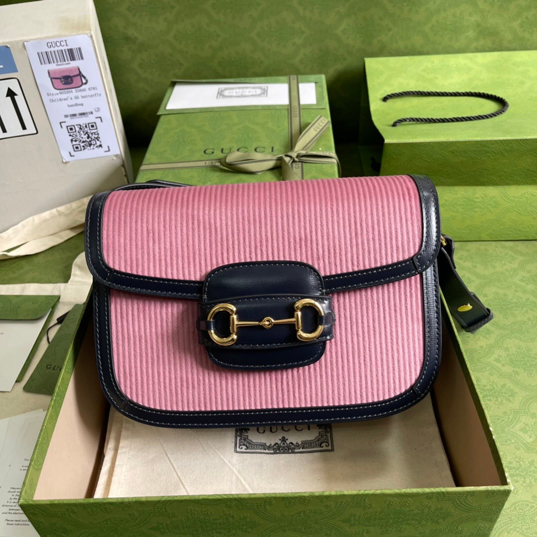 Recreated from an archival design, the Gucci Horsebit 1955 bag is introduced in pink corduroy with a contrasting blue leather trim. With the same lines and forms first introduced over six decades ago, the accessory unifies the original details with a modern spirit, highlighting the Horsebit. The small flap shoulder bag is completed with a special mechanism that adjusts the length of the shoulder strap so it can be carried on one shoulder or cross body.