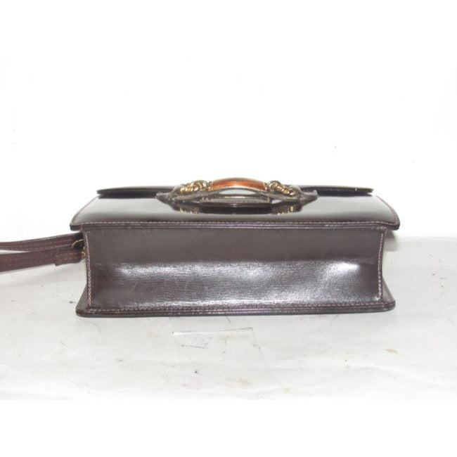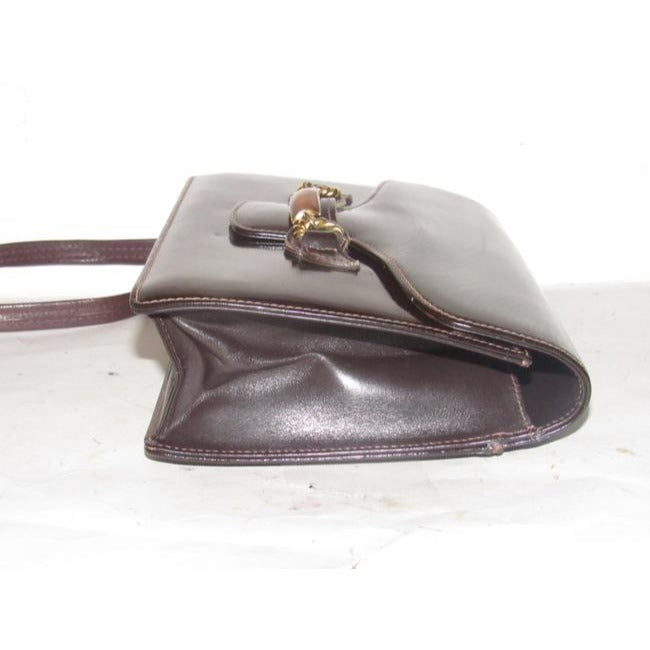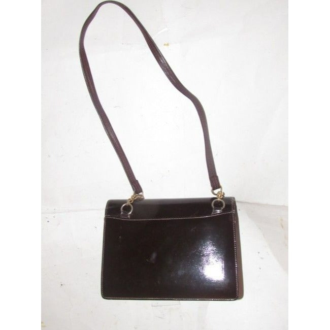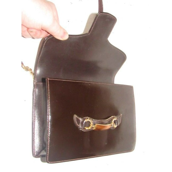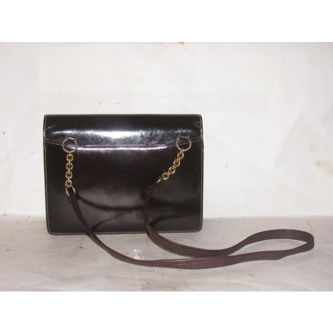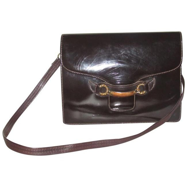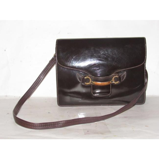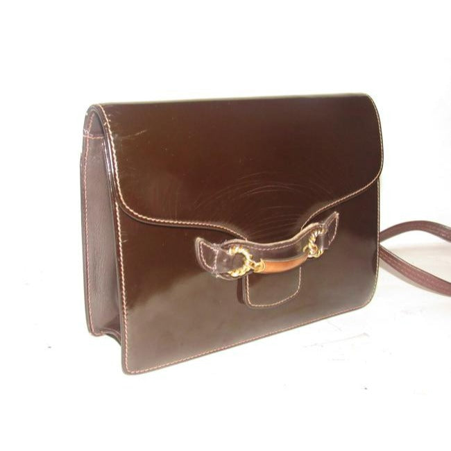 Gucci Horsebit Brown W Gold And Enamel Clasp Patent Leather Shoulder Bag