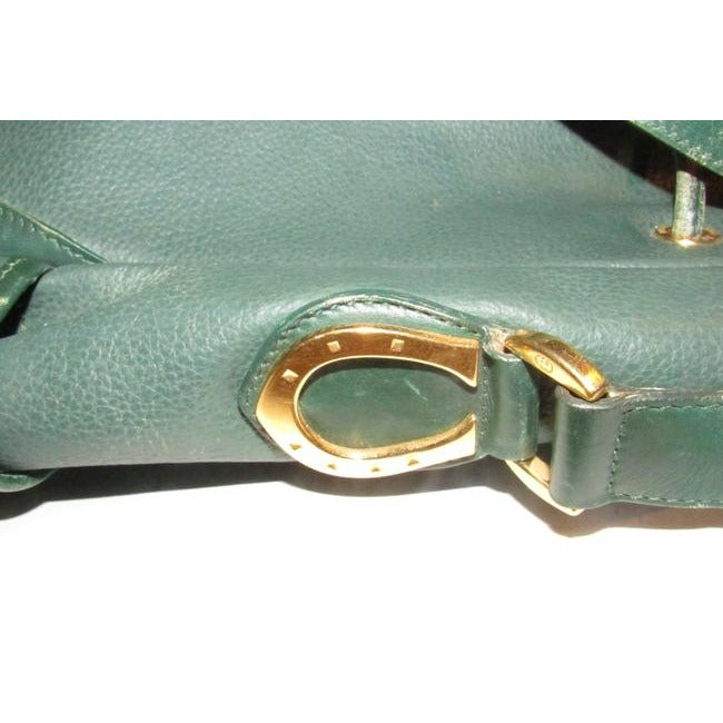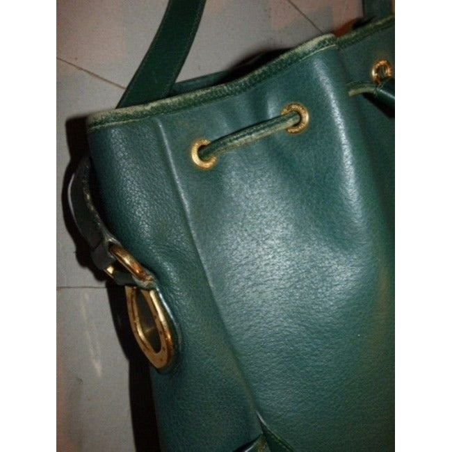 Gucci Horsebit Bucket Bag Xl Drawstring Accents Green W Gold Horseshoes Leather Satchel