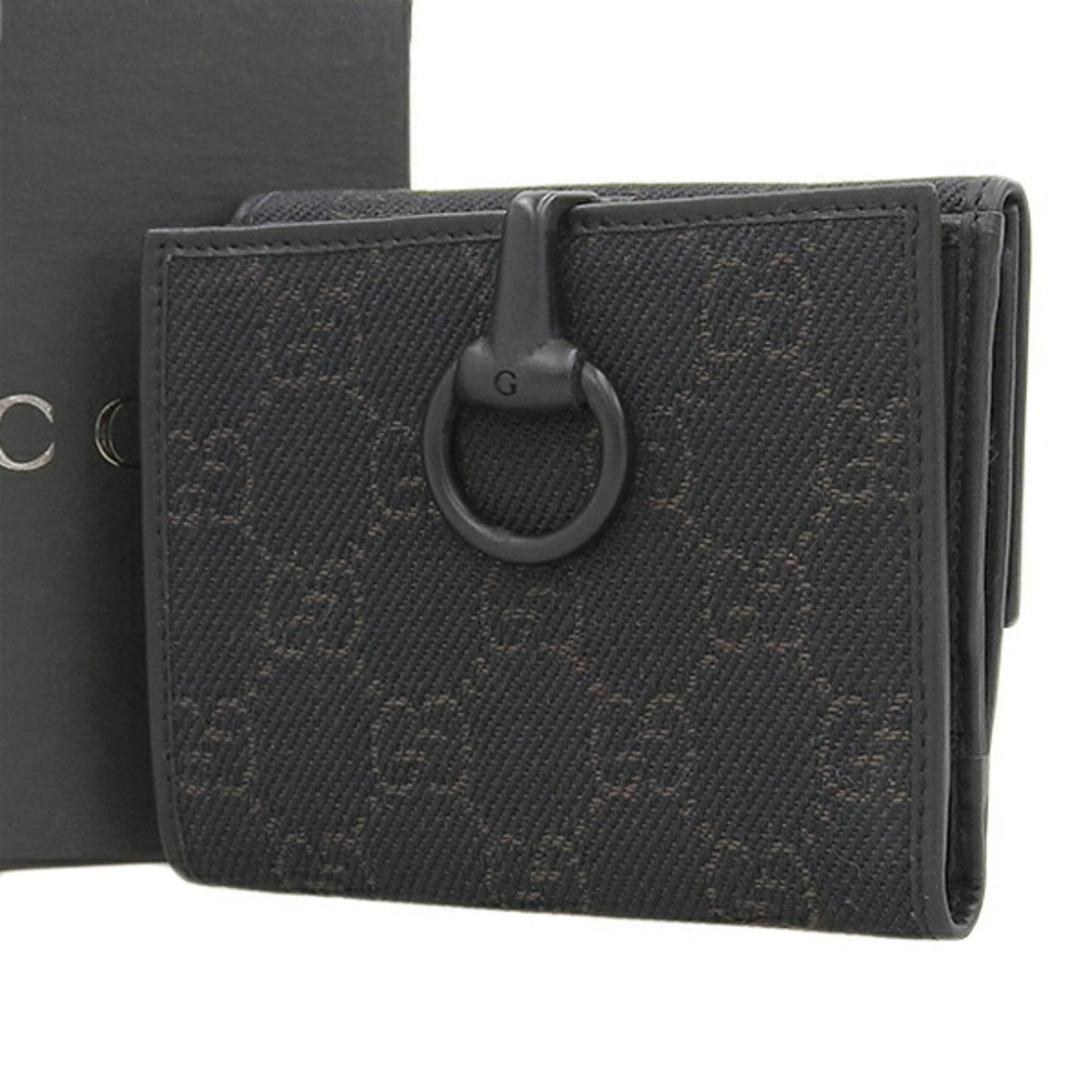 GUCCI Horsebit GG Canvas Bifold Wallet 101604 Black Women's