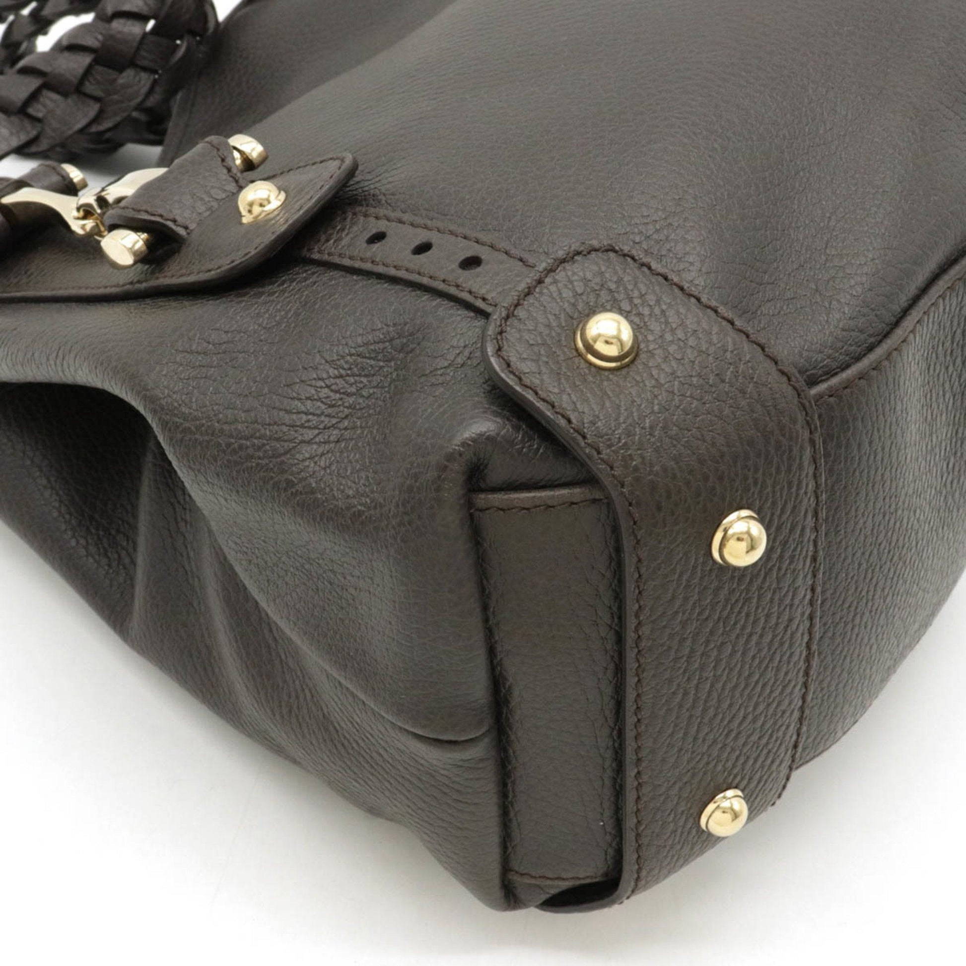 Gucci horsebit shoulder bag leather charcoal brown 336654