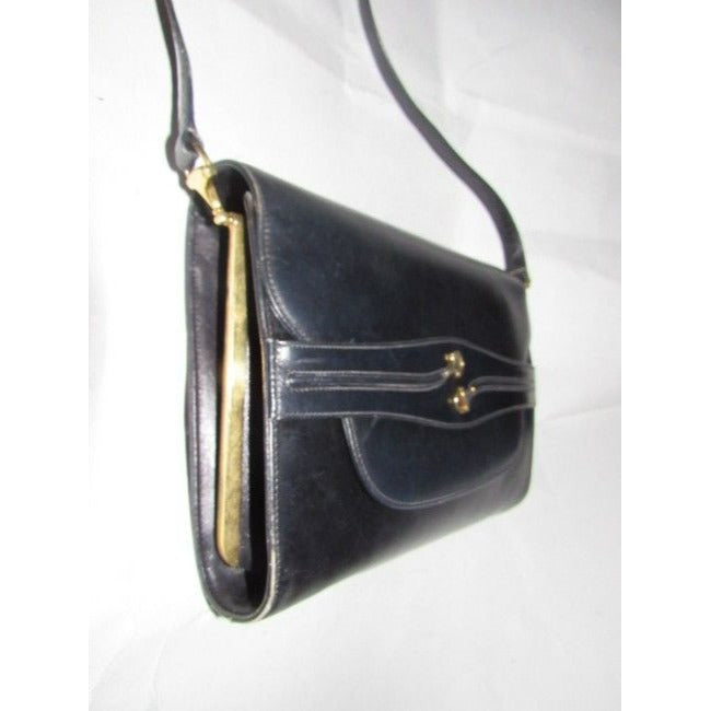 This piece is in great condition! It is a unique style in a classic design. This is the only black purse that you will ever need! Check out my other listings in my store! I have lots of vintage purses, so, if this one is not for you, I bet I have one that is 'it'! I have several other purses from this line in a more rectangular shape with the same equestrian accents in brown, black, burgundy, and logo pints!