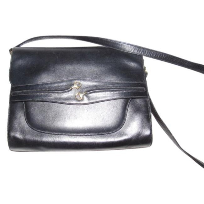 Gucci Horsebit Vintage Glossy Black Leather With Gold Equestrian Accents