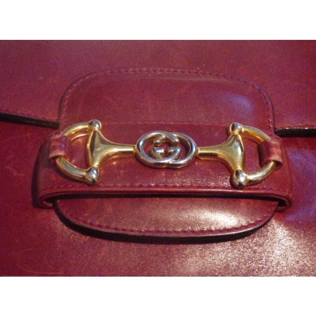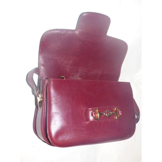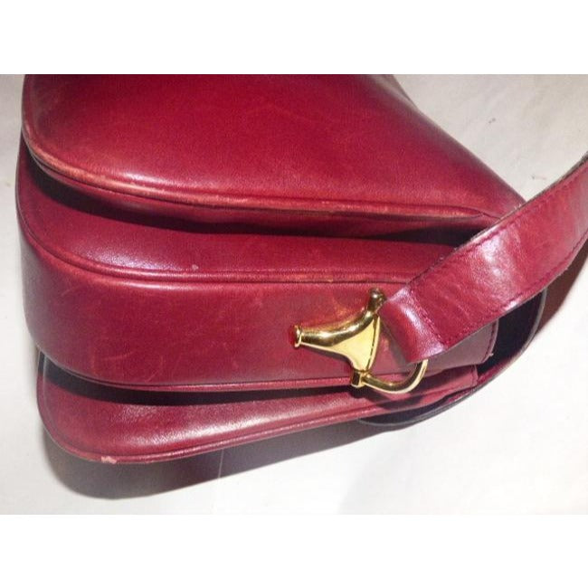 SOLD! Gucci Horsebit W Clasp Burgundy Leather Shoulder Bag