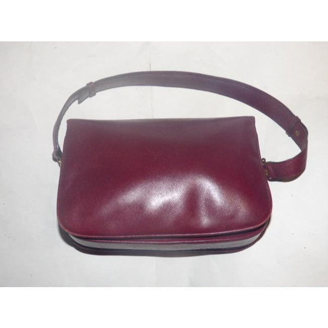 This piece is in great condition! It is a unique style in a classic design. This is the only burgundy purse that you will ever need! Check out my other listings in my store! I have lots of vintage purses, so, if this one is not for you, I bet I have one that is 'it'! I have this style purse in other colors- brown leather with black flecks, glossy black, large G logo coated canvas in browns and a cream, small G logo print coated canvas!