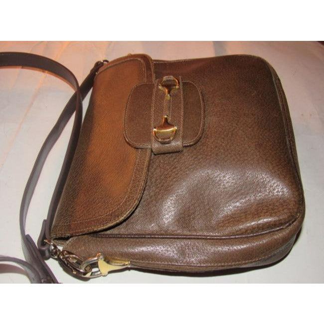 * For sale is a Gucci, 1960's mod, brown leather with black specks, envelope top, cross body or shoulder bag with adjustable strap & horse bit accents! It is a classic style that would be great used as a signature, everyday brown purse!