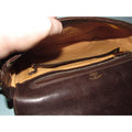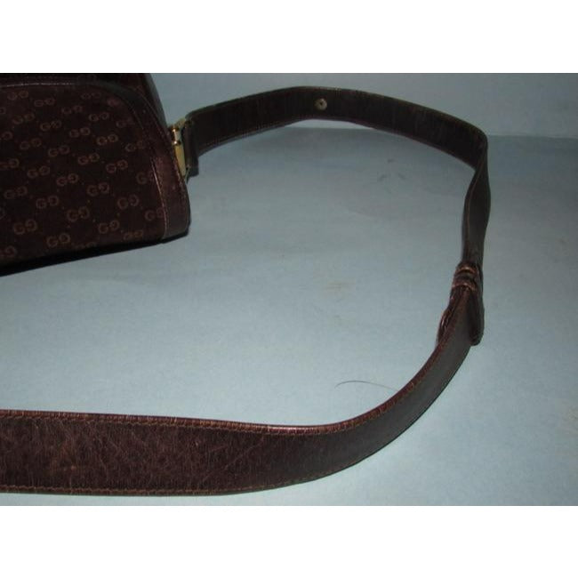 This piece is in great condition! It is a unique style in a classic design. This is the only brown purse that you will ever need! Check out my other listings in my store! I have lots of vintage purses, so, if this one is not for you, I bet I have one that is 'it'! I have this same style purse a larger size in a rich brown leather with black flecks, burgundy leather, a large G logo print, a small G logo print, and a glossy black leather, too!
