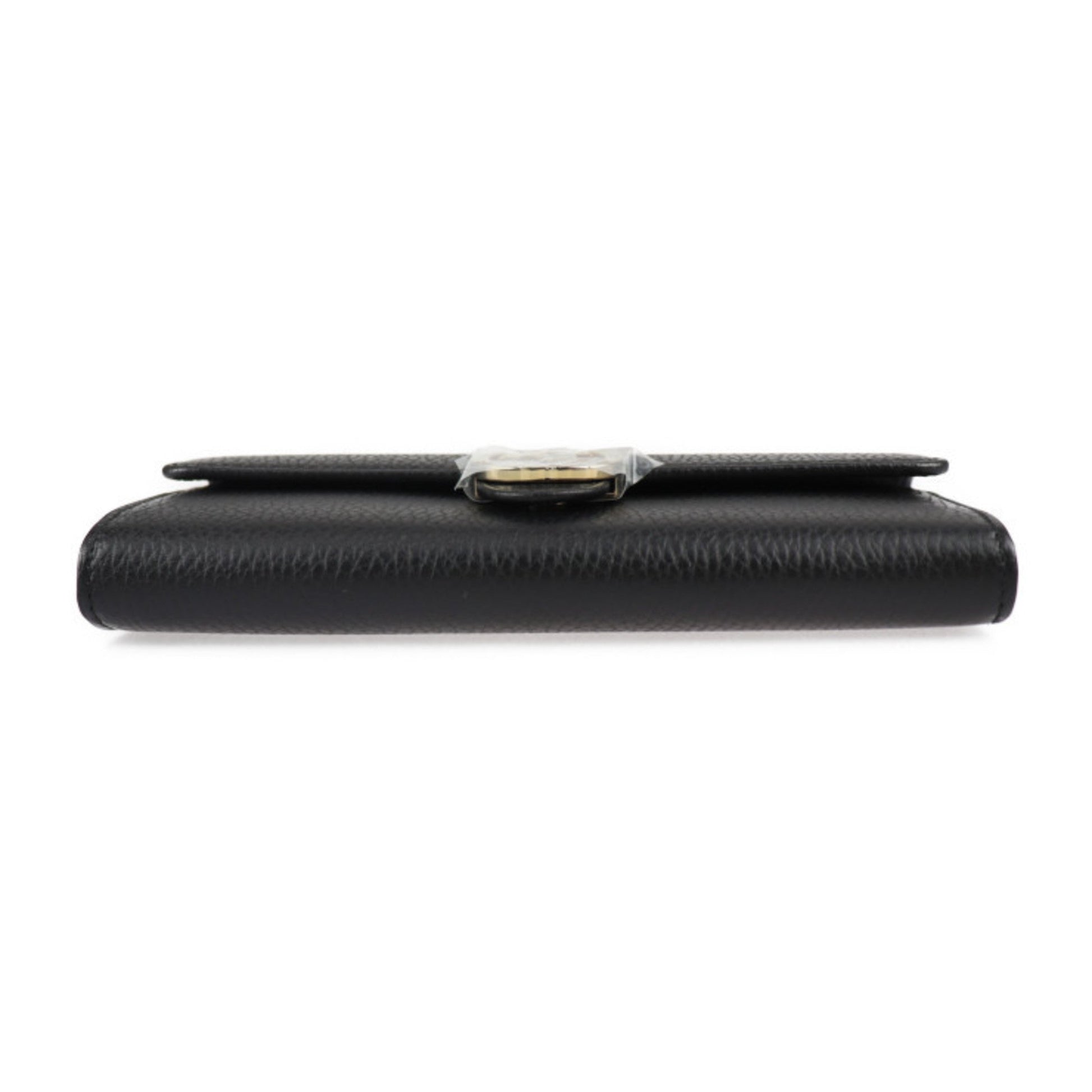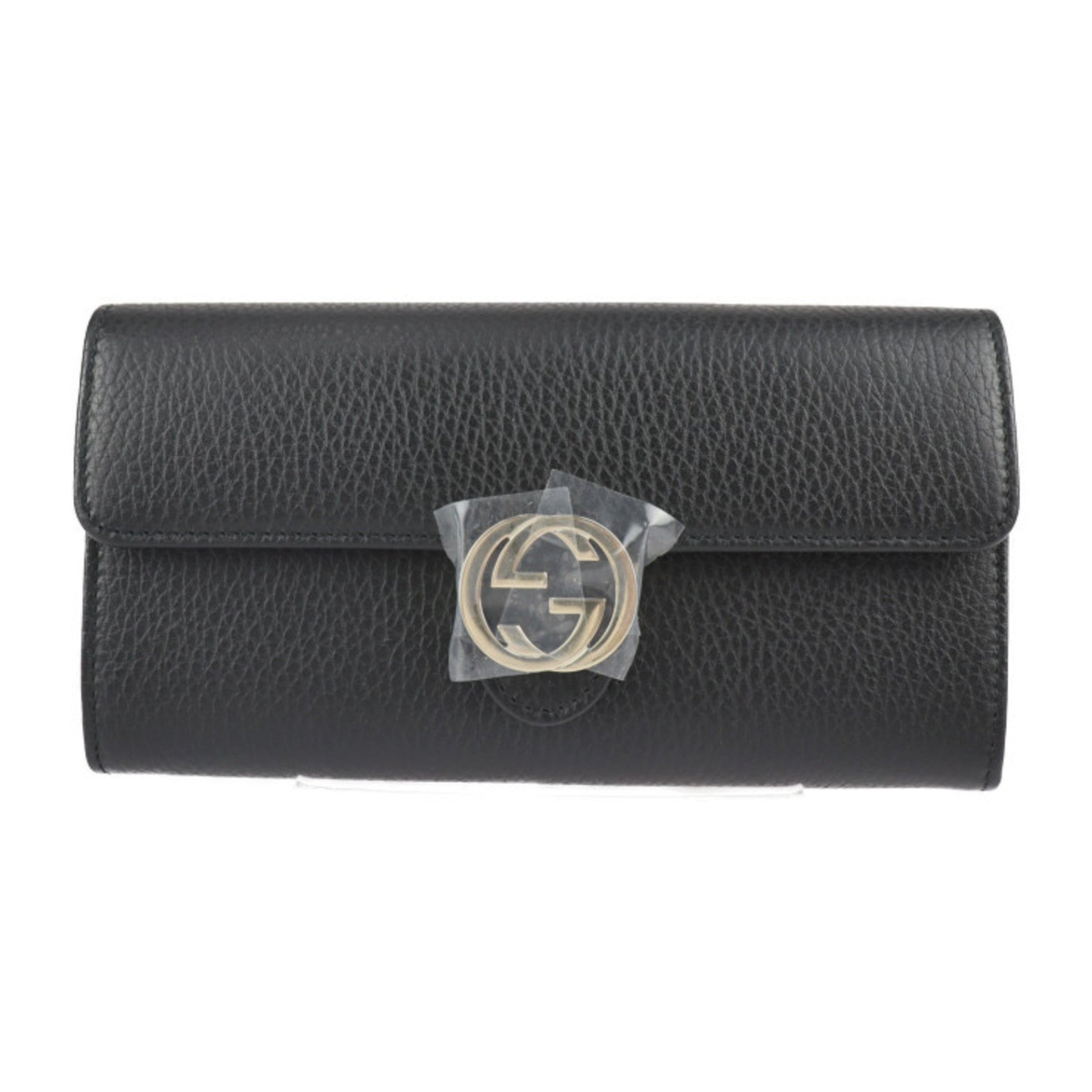 Gucci Interlocking G Bifold Wallet 615524 Leather Black Gold Hardware Long
