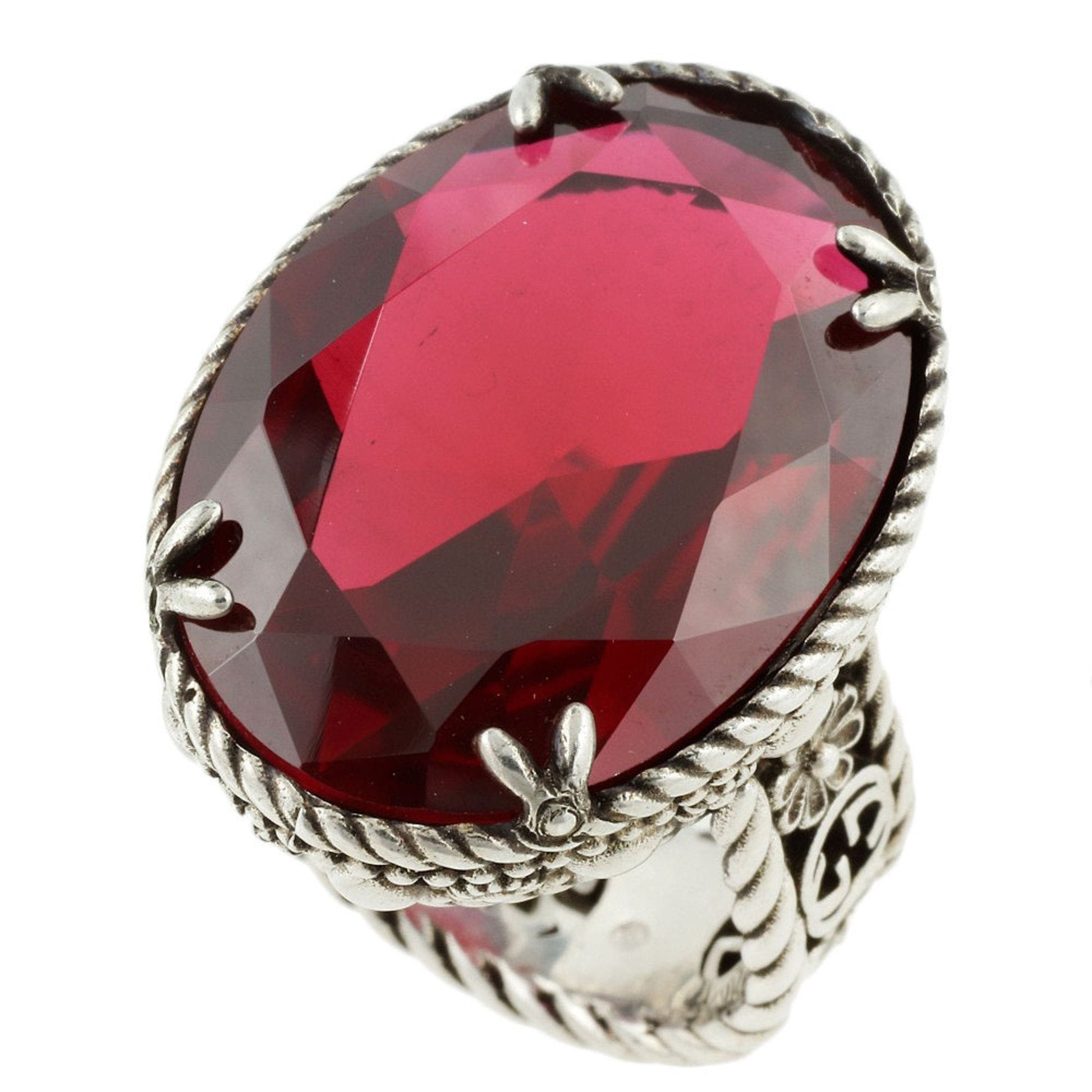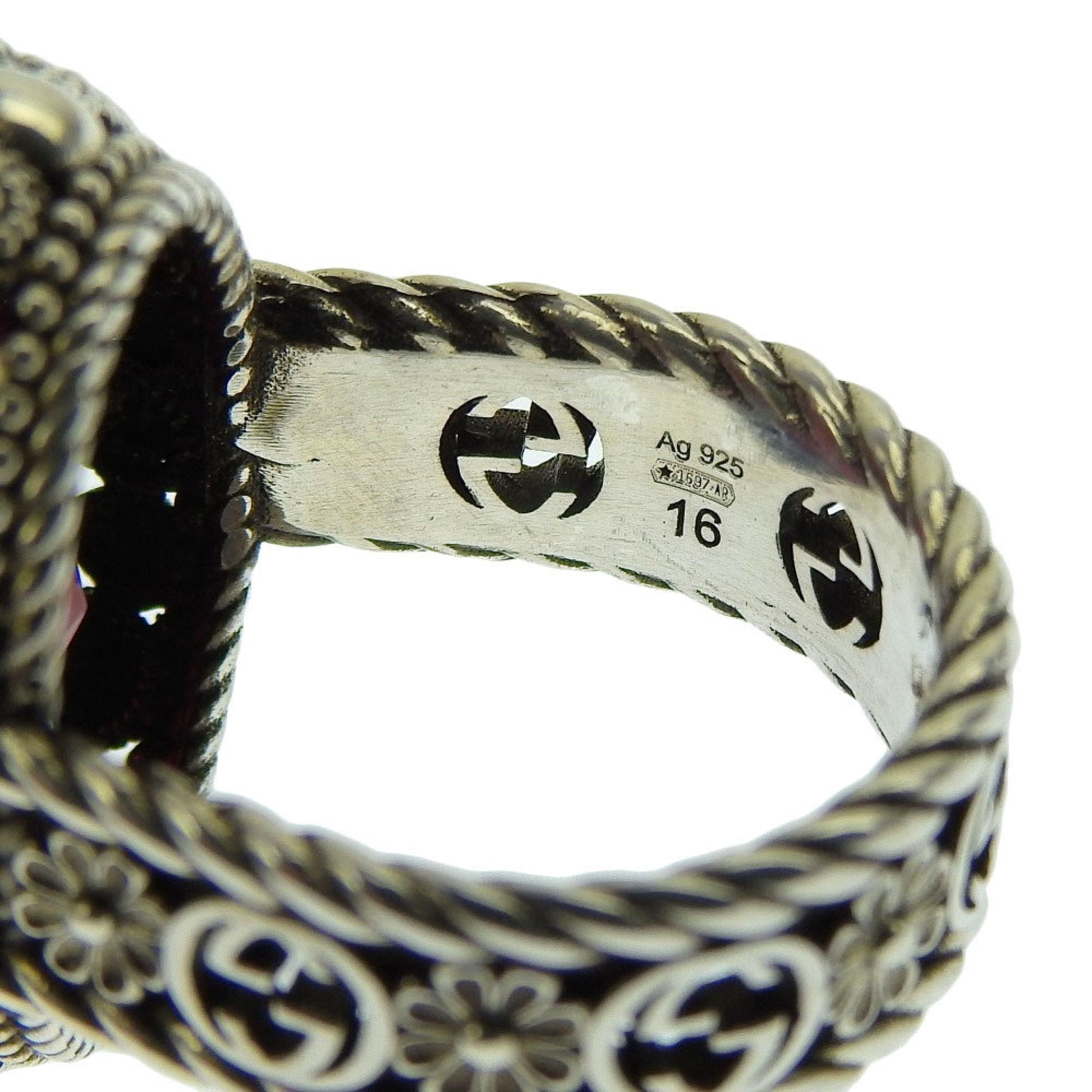 Gucci Interlocking G Flower Ring SV925 Color Stone Red #16 No. 13