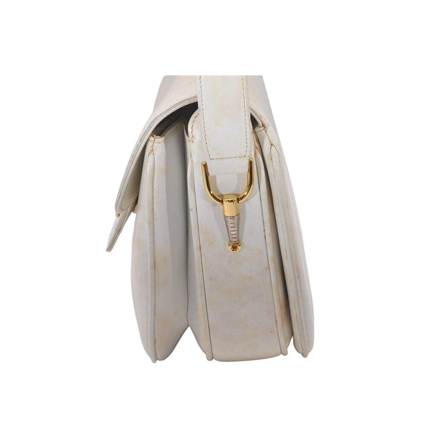 This piece is in great condition! It is a unique style in a classic design. This is the only ivory purse that you will ever need! Check out my other listings in my store! I have lots of vintage purses, so, if this one is not for you, I bet I have one that is 'it'! I have this style purse in other colors, prints, & sizes, too- black leather with black flecks and a cream, brown Guccissima, small G logo print coated canvas in this size and in brown, blue, red, black micro G, blue micro G in the smaller size!