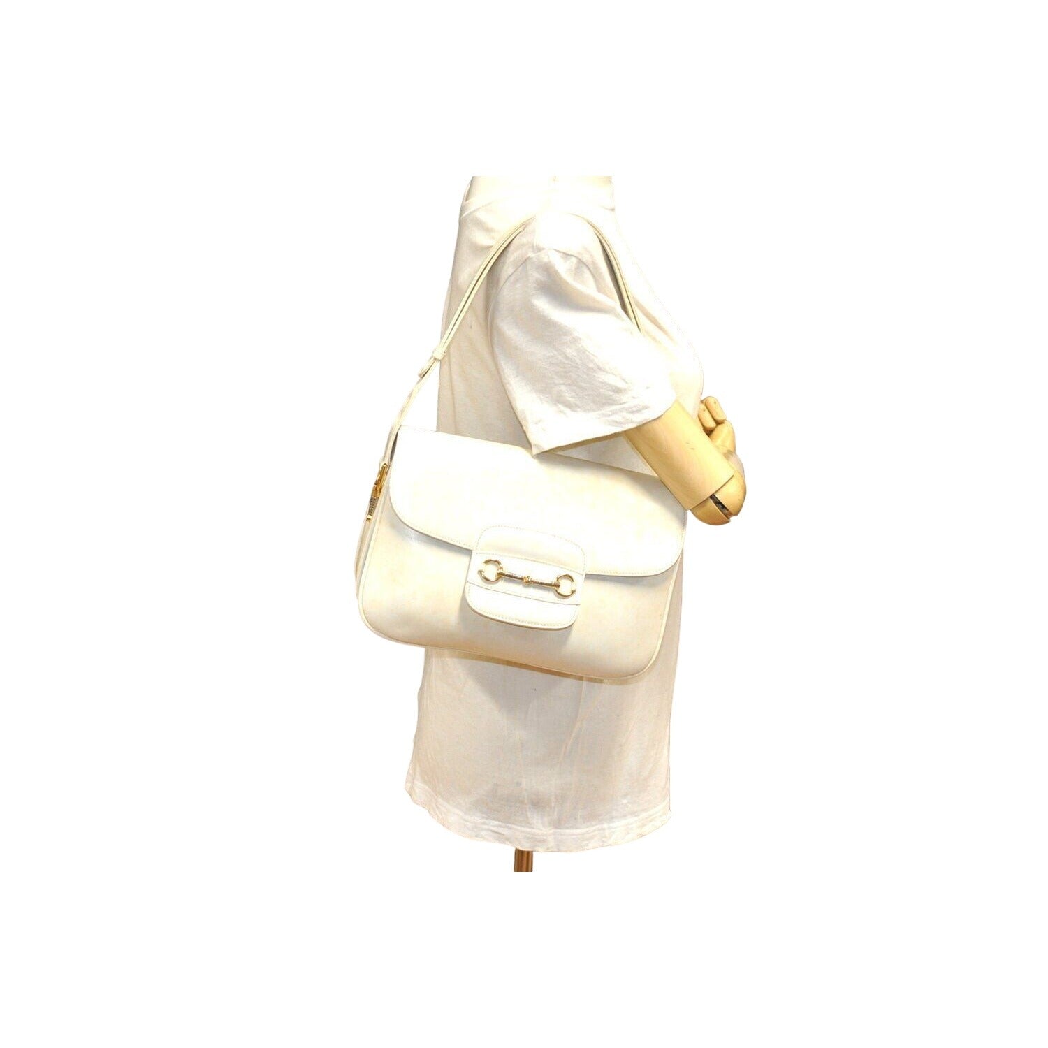 Gucci Ivory Leather 1955 Horse-bit Shoulder bag with two-tone hardware