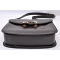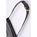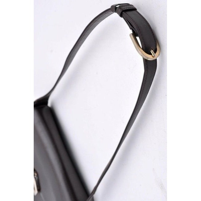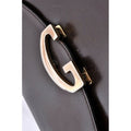 The shoulder bag is made of supple, glossy brown leather. It has a bold gold tone 'G' accent at the front, center that acts as a hinged clasp! The purse has an adjustable shoulder strap with an envelope flap top in a saddle bag style. It has can expand both on the sides and at the accordion style bottom to allow it to hold more then you might think. There is an exterior pocket on the back, too! This is a great everyday brown purse that is also chic and edgy!
